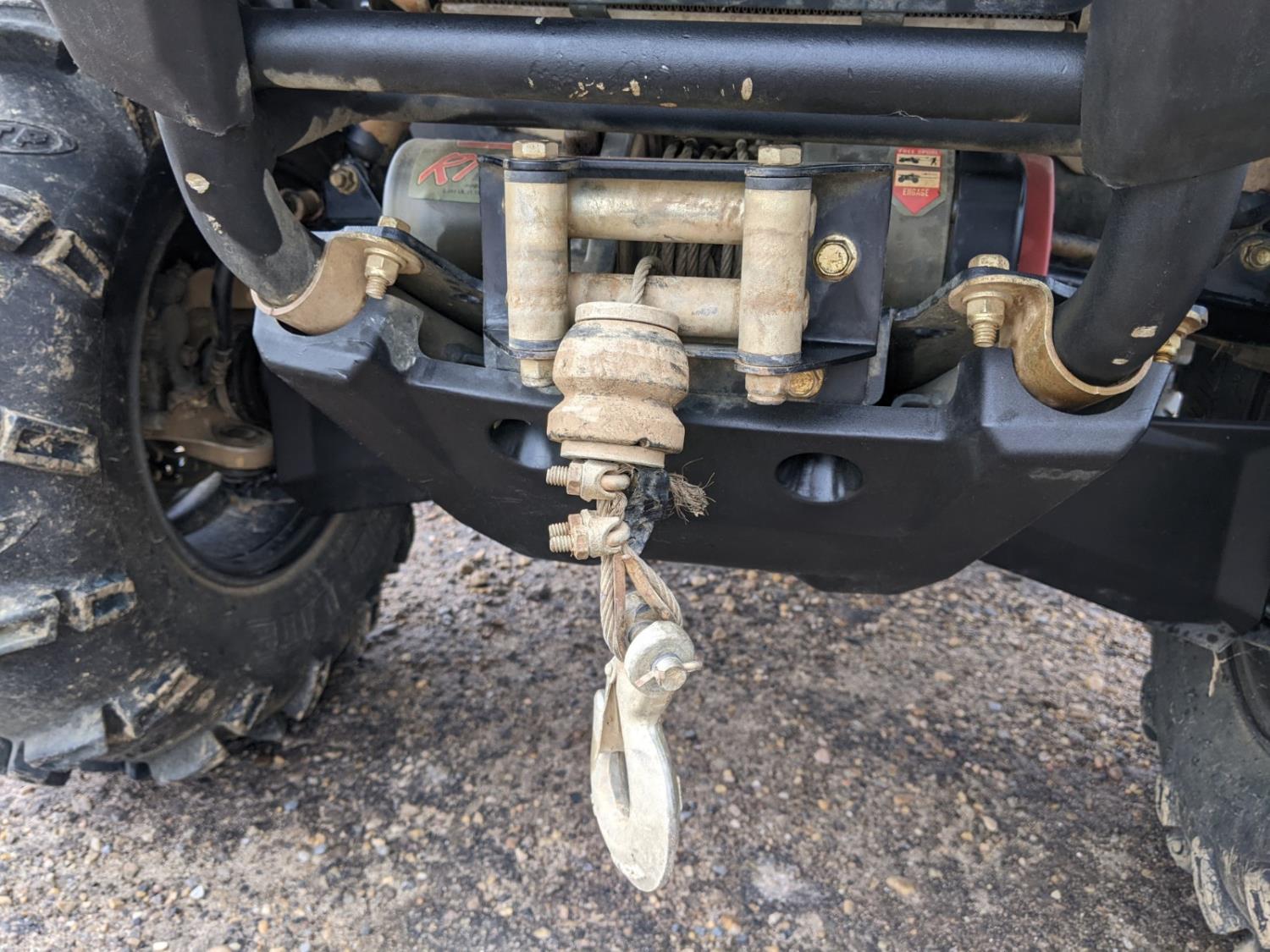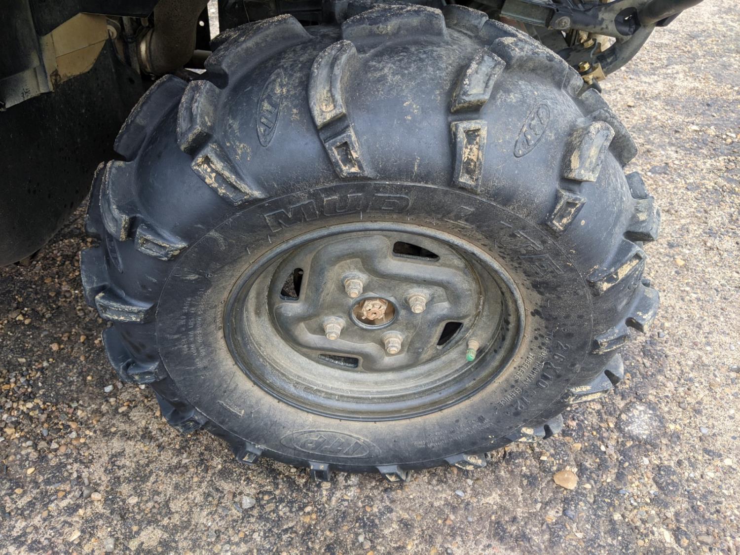 633 cc engine, automatic transmission, Hi/Lo range, reverse, hitch, front and rear racks, buddy seat, tool box, front winch, 26X12-12 front tires, 26X10-12 rear tires
