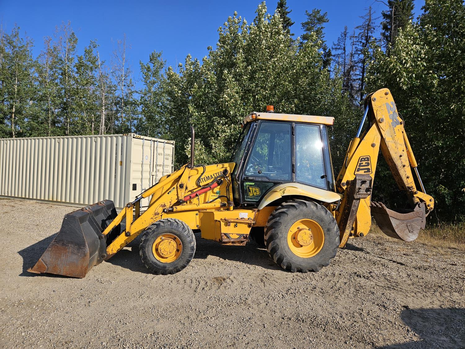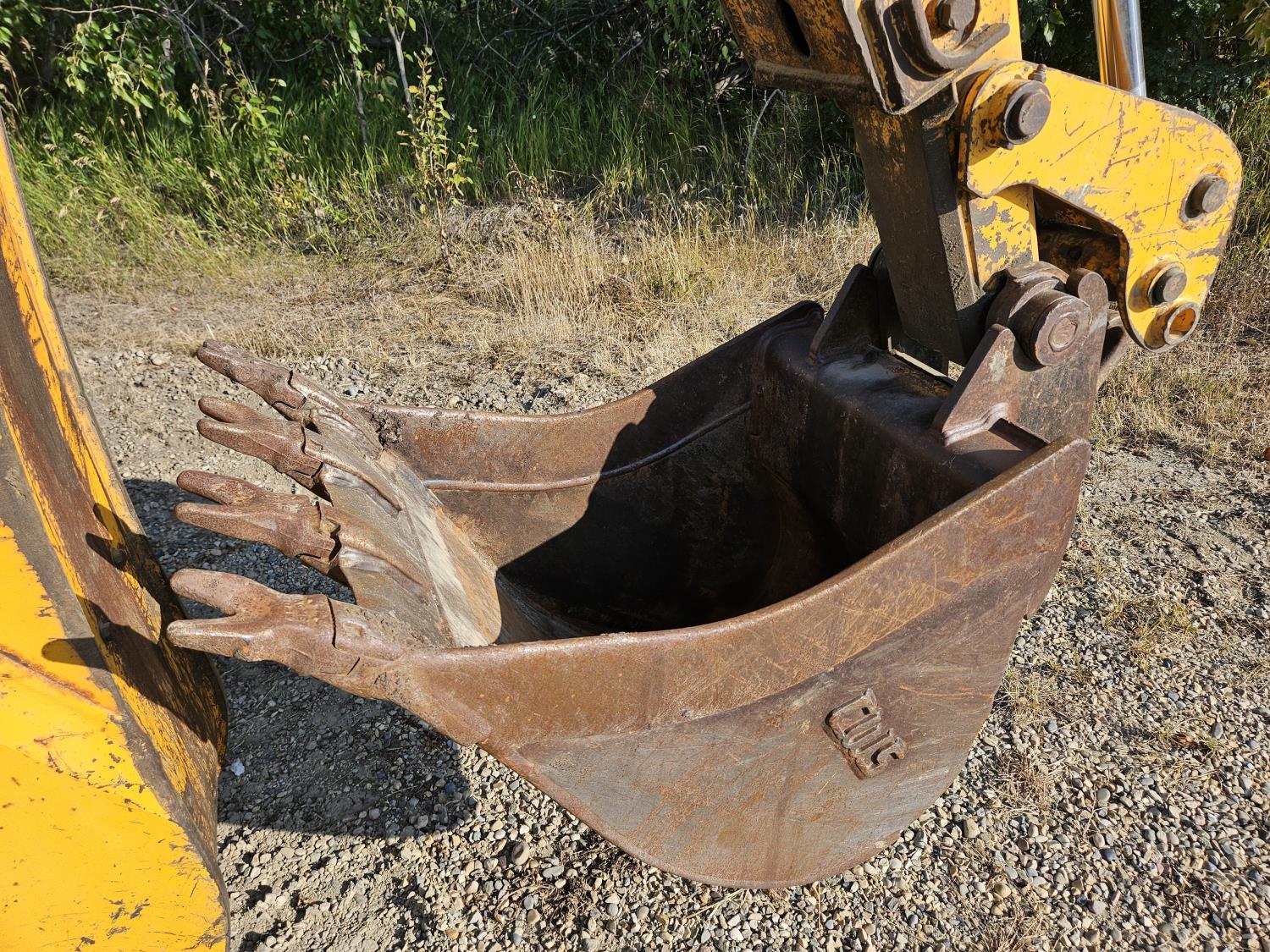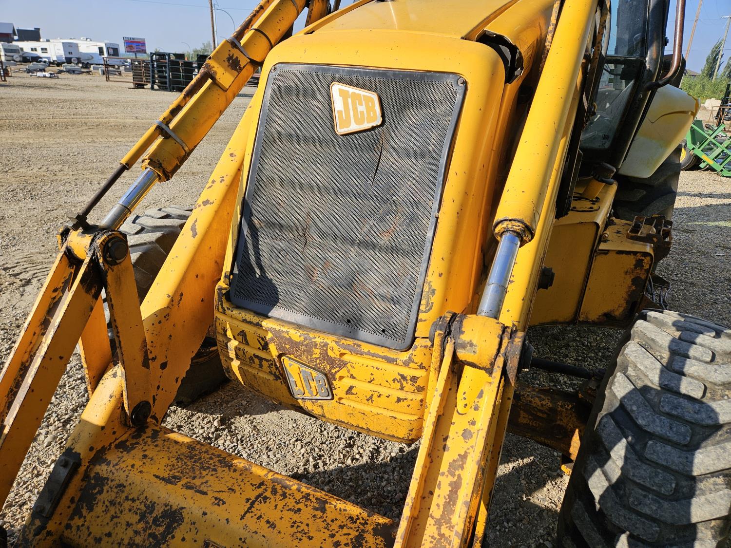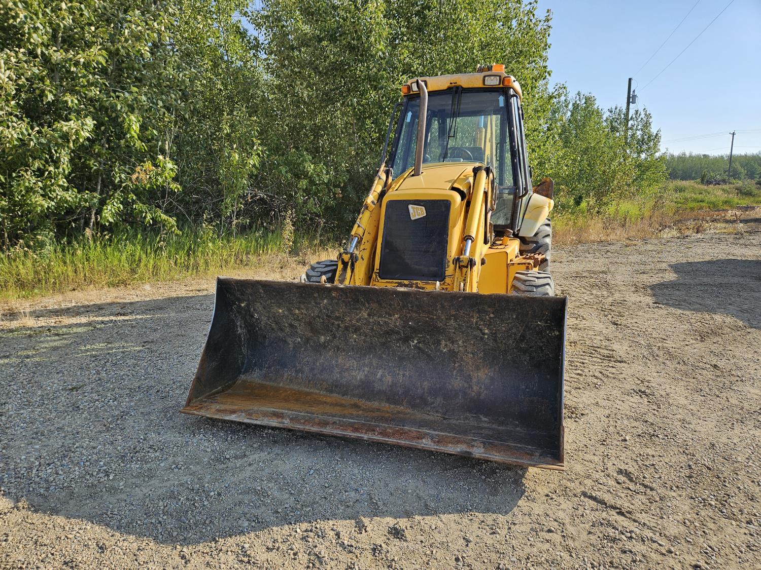 Enclosed cab, 4 speed powershift transmission, Perkins diesel engine, left hand shuttle shift, 92 inch smooth loader bucket, 23 inch dig backhoe bucket, 78 inch stick, outriggers, 14-17.5 front tires, 19.5L-24 rear tires