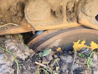 hydraulic thumb, 160 inch stick, no bucket, hrs unknown, 31" inch track pads, triple grousers