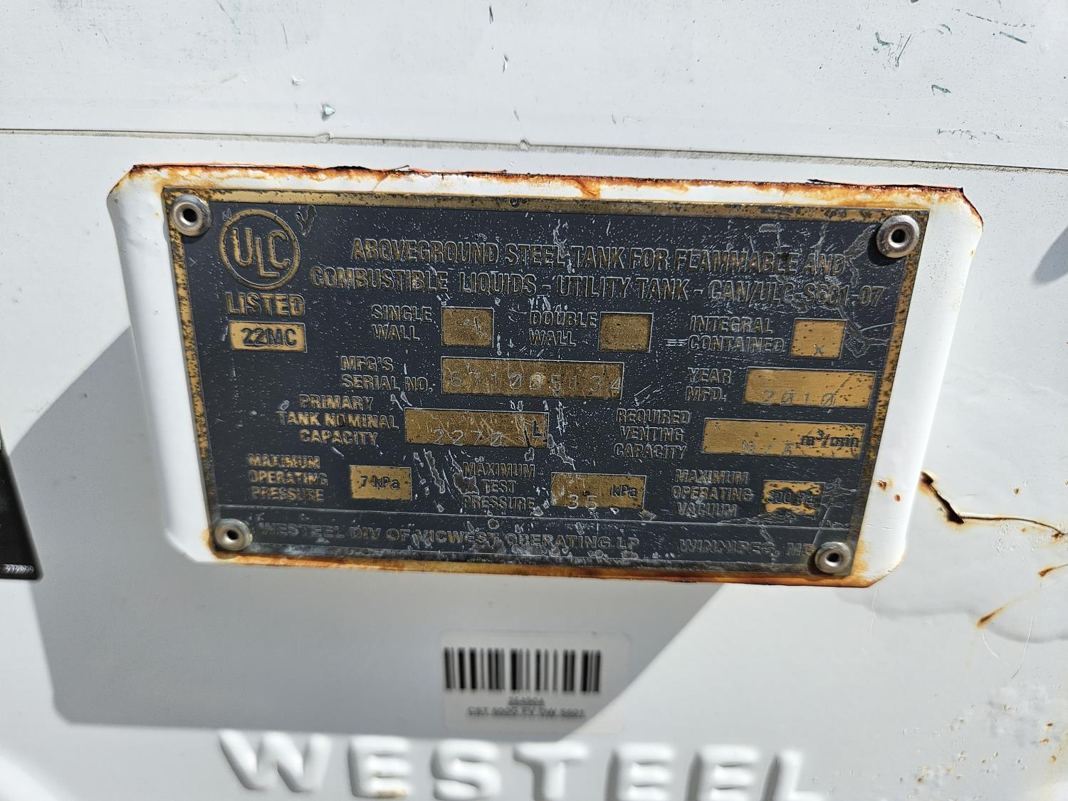 109 2010 Westeel Double Wall Fuel Vault