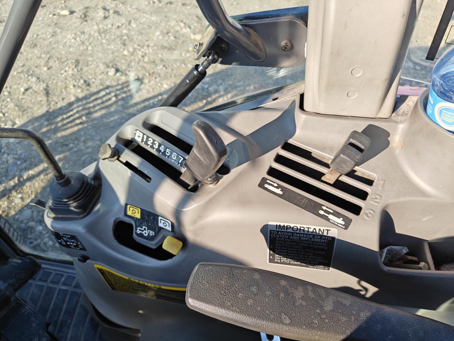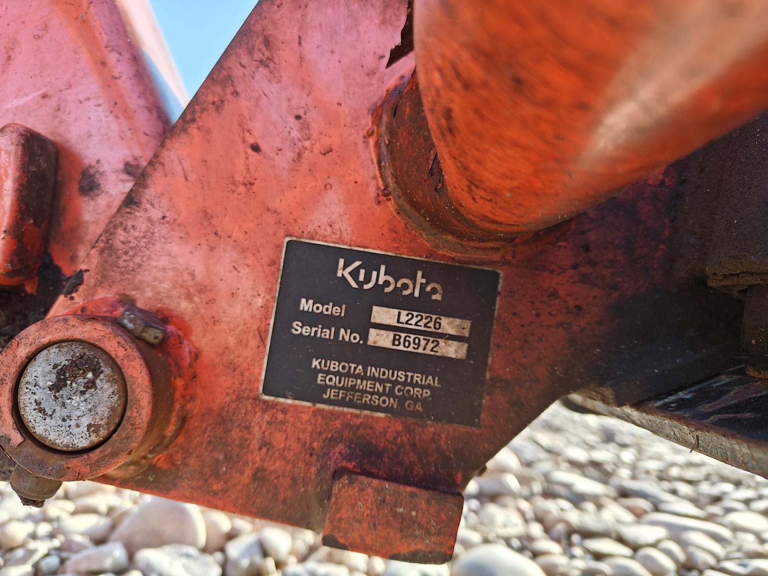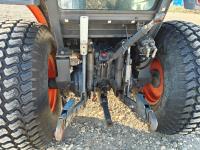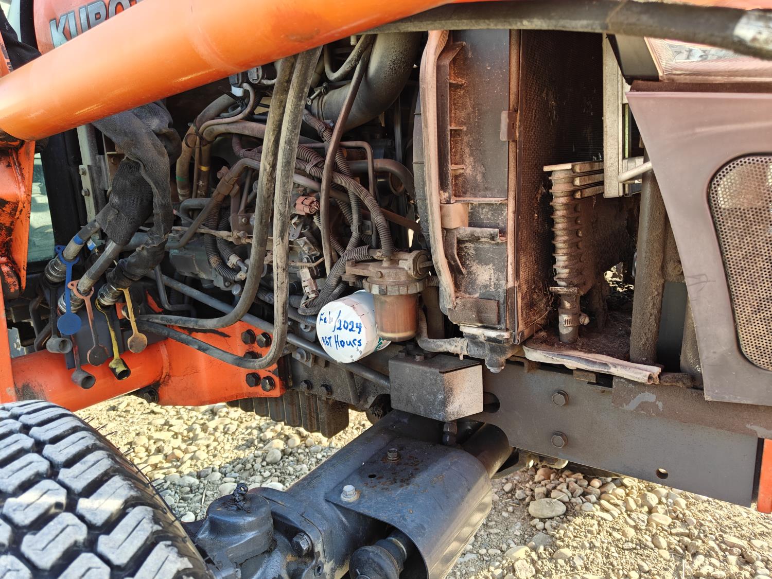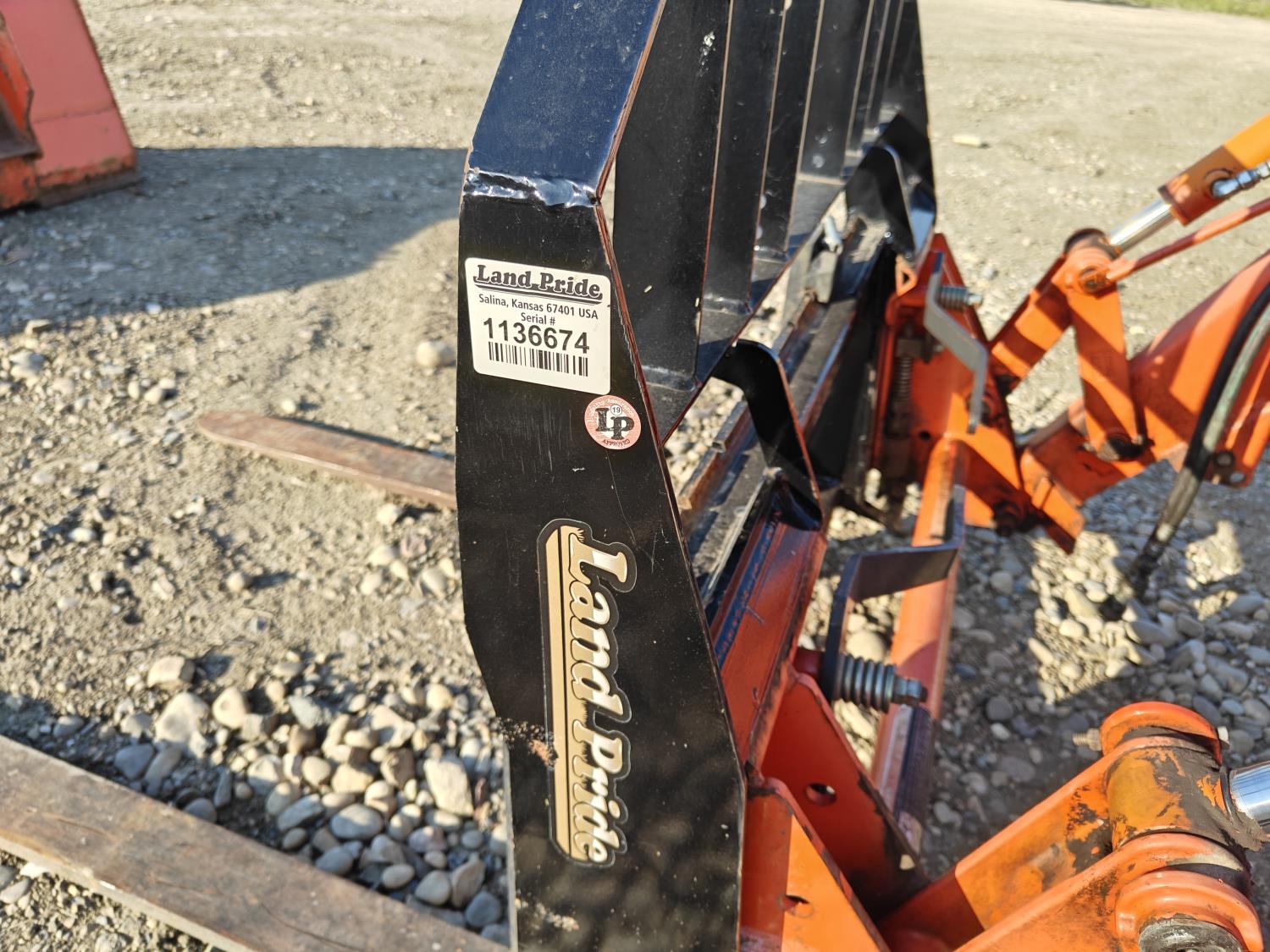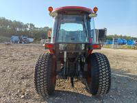 Kubota LA854 loader, Q/A, 73 inch bucket, Kubota 2.4 L 4 cylinder 47 HP, diesel engine, 41 PTO HP, hydro 3 range transmission, 10 GPM hydraulic pump, cab, rear differential lock, joystick, A/C, radio, upgraded stereo, 48" Land Pride pallet forks , 540 PTO, 3 point hitch, 2 rear hydraulic outlets, 29X12.50-15 front tires, 44X18.00-20 rear tires