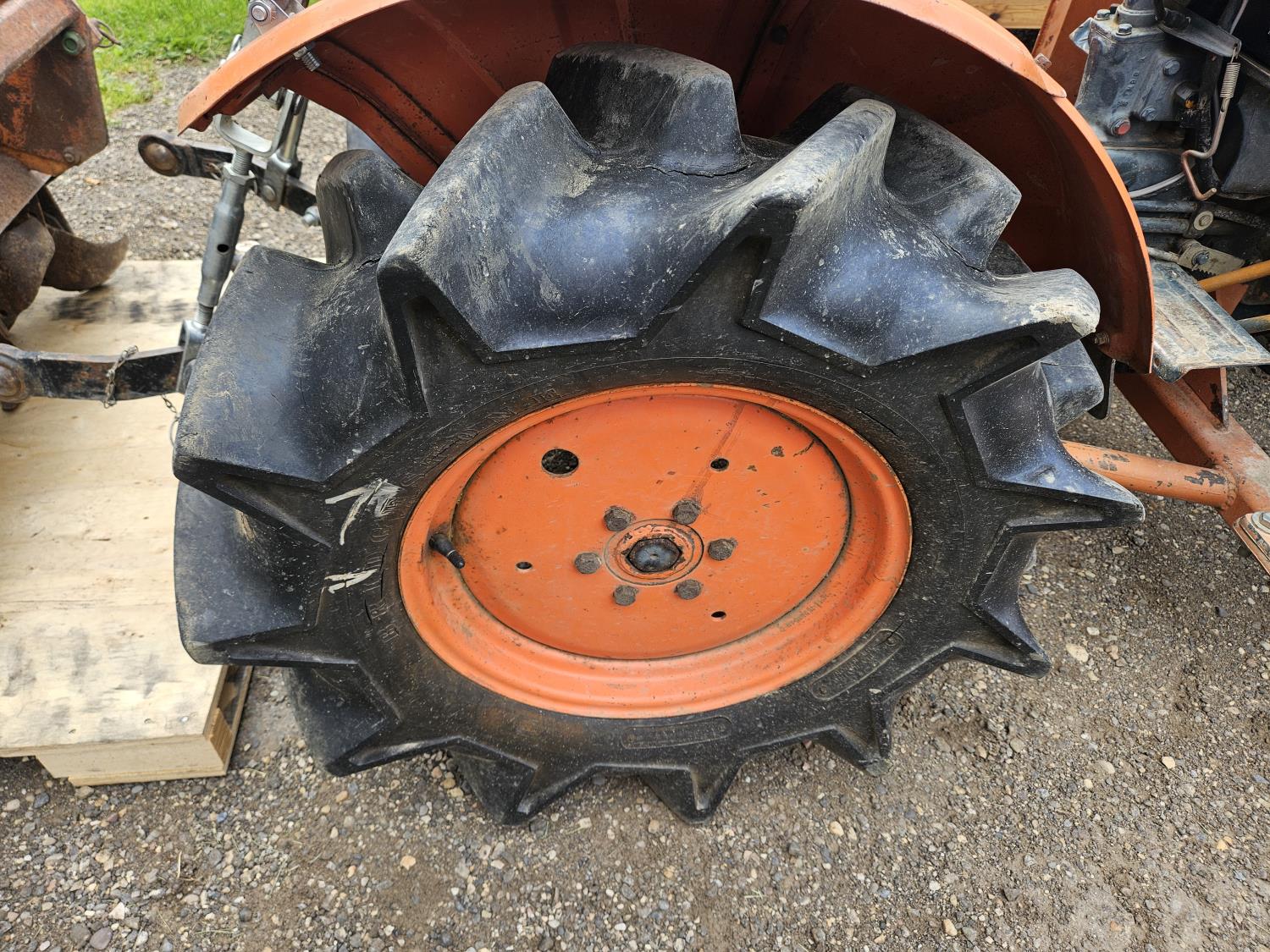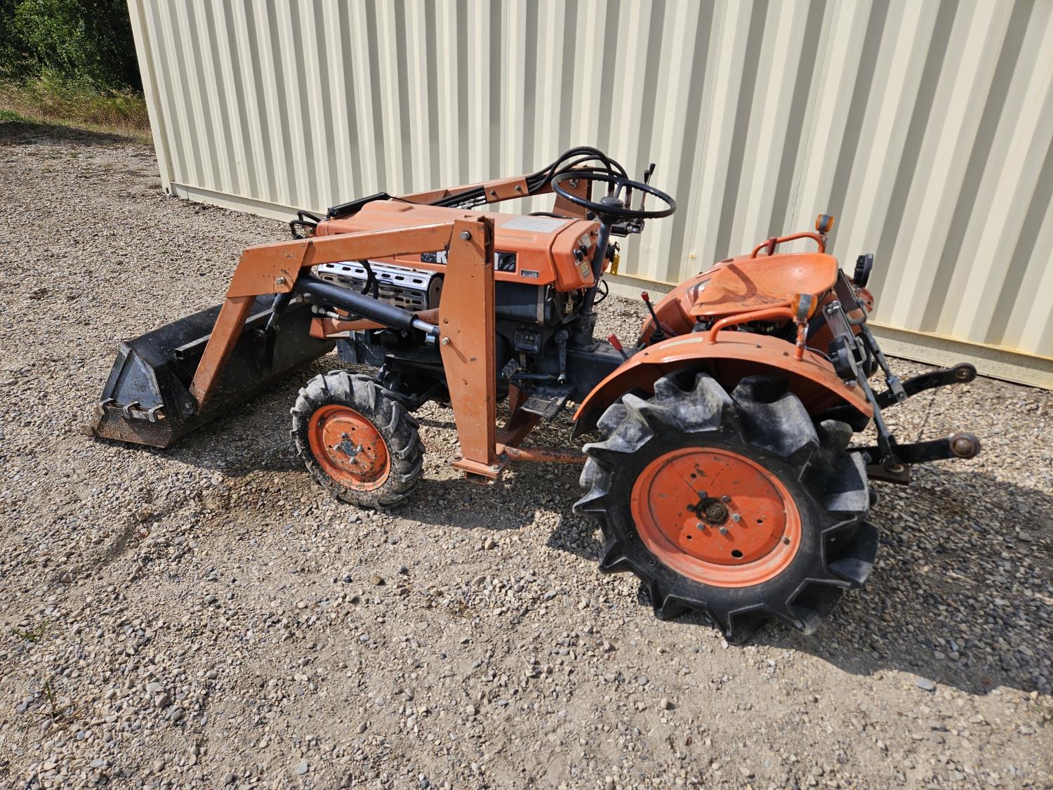 Loader, 40 inch bucket, 2 cylinder 12.8 HP, diesel engine, 6 speed manual transmission, 540 PTO, 3 point hitch, 5.00-12 front tires, 8-16 rear tires, c/w 38 inch rototiller and gas engine