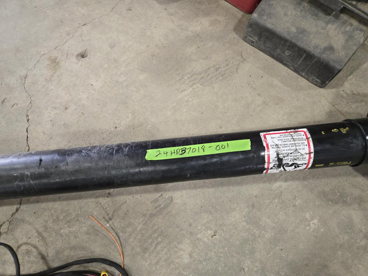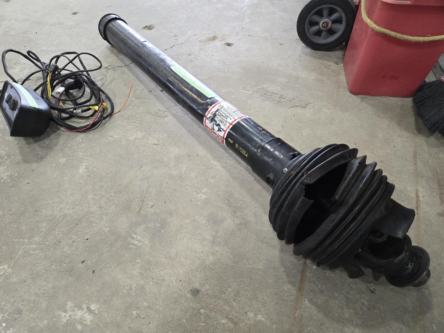Monitor and PTO shaft inside shop.