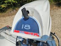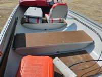 12 ft Sears aluminum boat with 18HP outboard Evinrude. Fresh paint on the interior with two new swivel bucket seats, new steering cable, fuel tank and storage under the second bench seat. No leaks and motor runs.