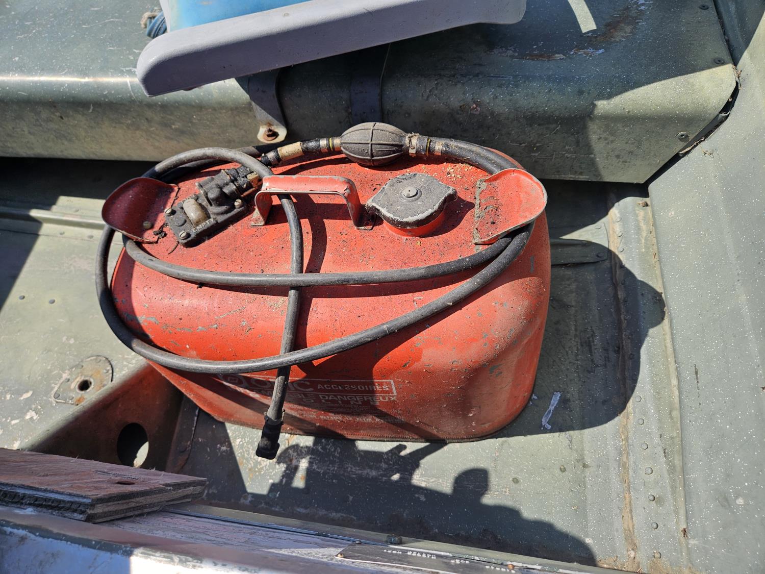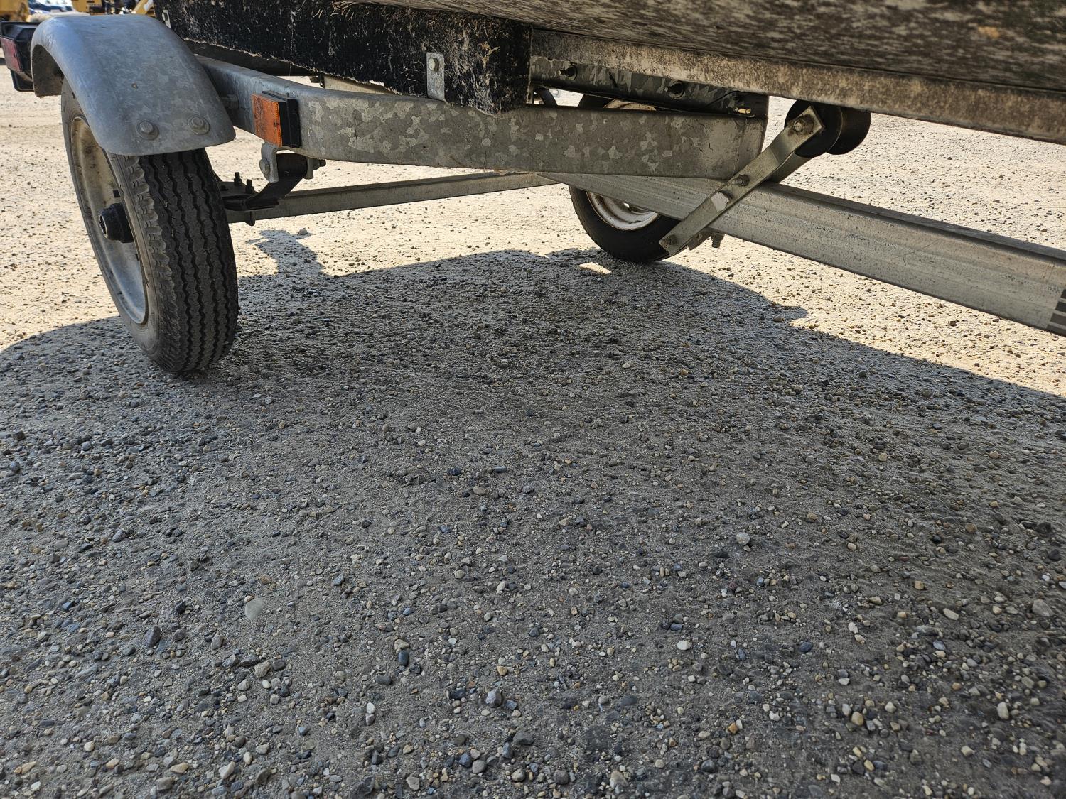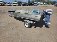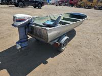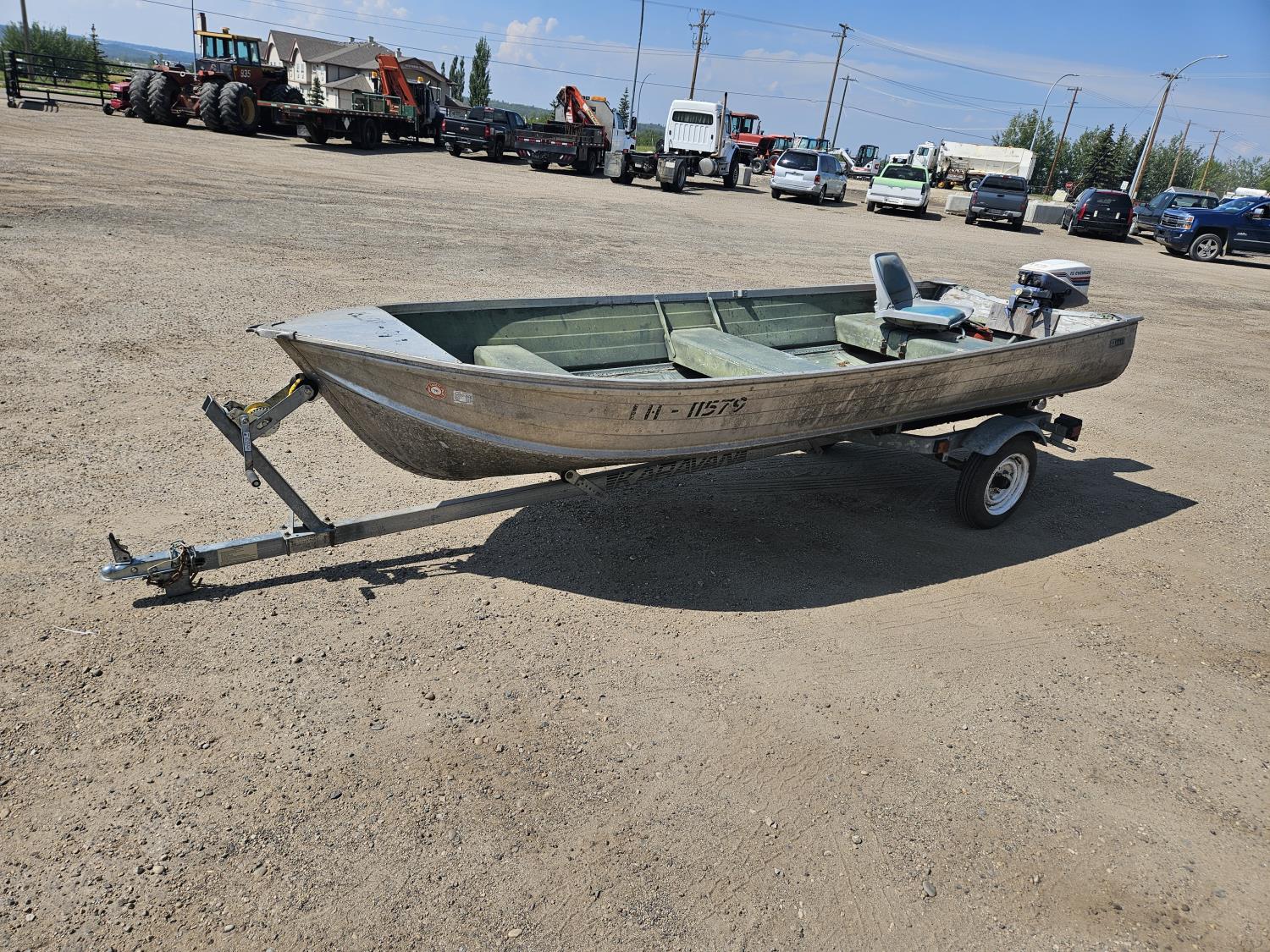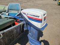 15 HP Evinrude outboard motor, fuel tank, Karavan S/A trailer, 4.80-12 tires, boat cover