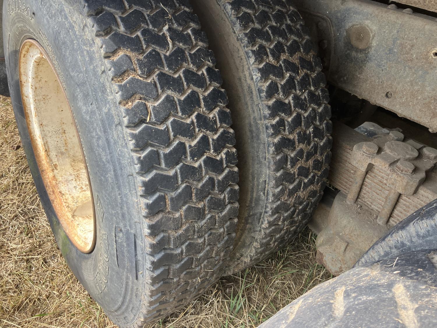 V8 gas engine, automatic transmission, air brakes, roll tarp, 20 ft box, hoist, 10.00X20 tires