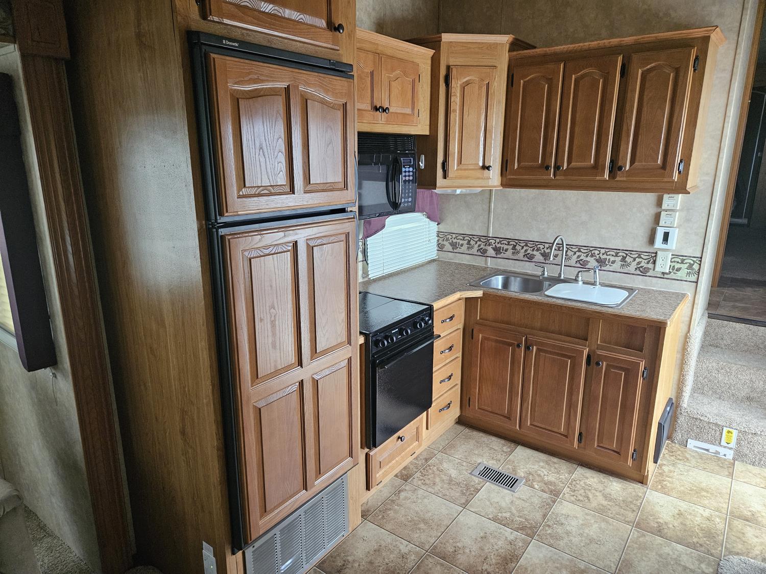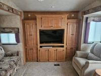 stove, fridge, microwave, full bath, A/C, power awning, power levelling jacks, 6.5ft, 8ft, and 12.5ft slides, tv, (4) chair dinette, fold out couch, privacy shades, 235/85R16 tires