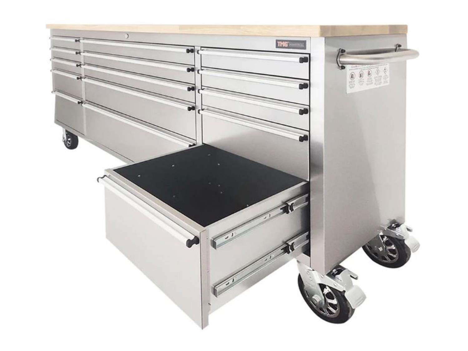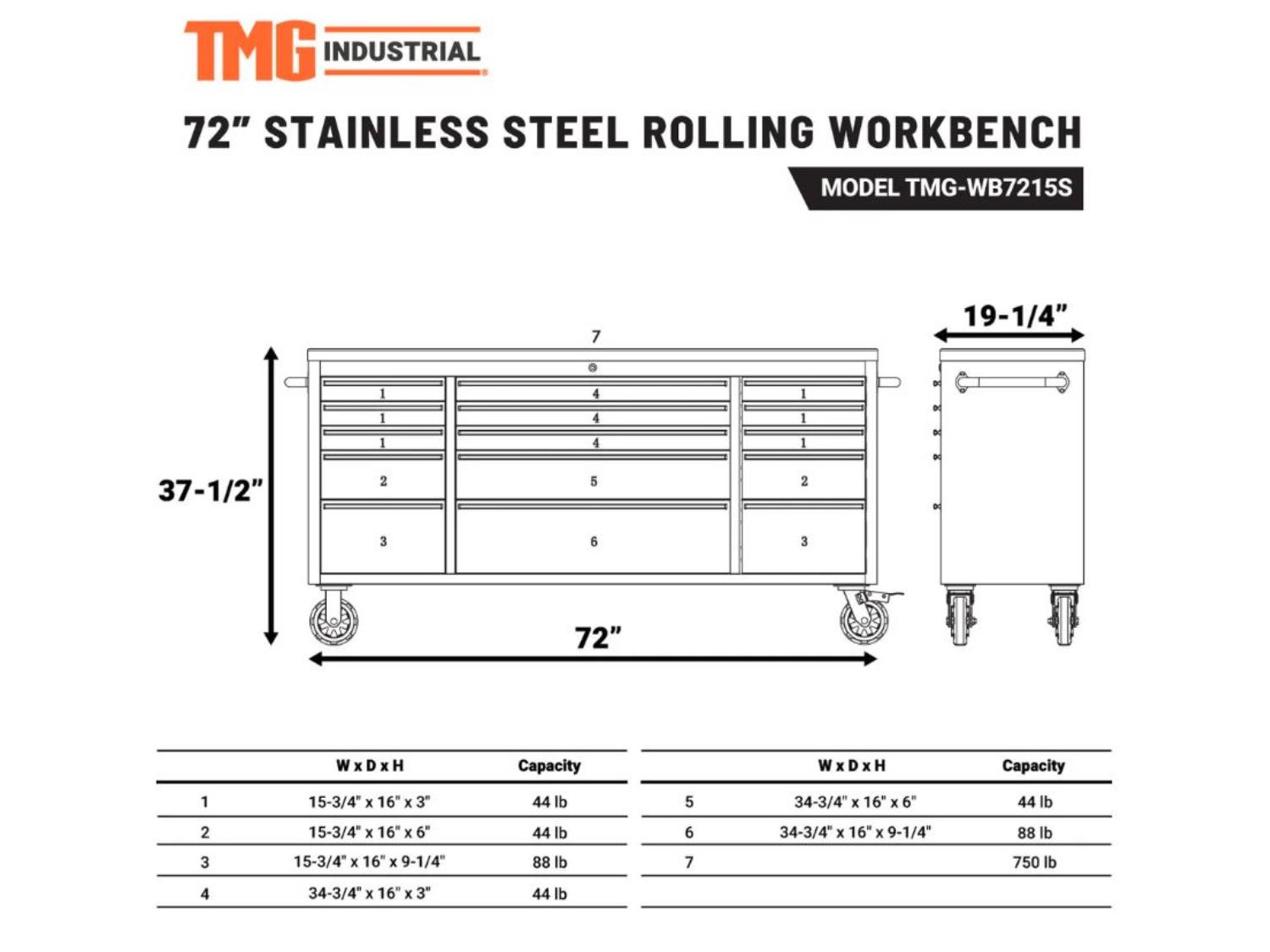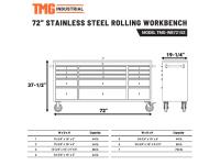 84 TMG Industrial TMG-WB7215S 72” Stainless Steel Rolling Workbench (Unused)