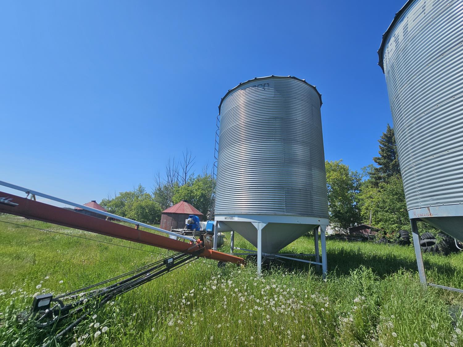 2,250± bu capacity, Westeel 6 leg hopper, 2 foundation rings, ladder, Emerson 3 HP aeration fan
