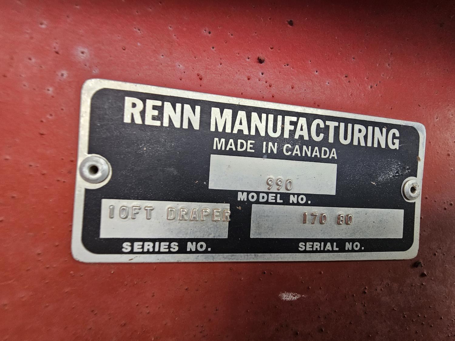 Renn 990 10 ft pick-up header, chopper, 1000 pto, monitor, 18.4-26 rear tires