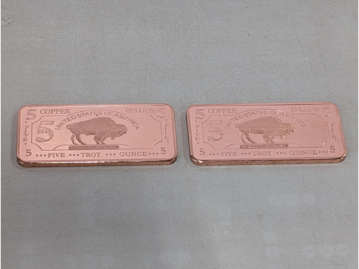 1775 (2) 5 oz Copper Bullion Bars (Unused)