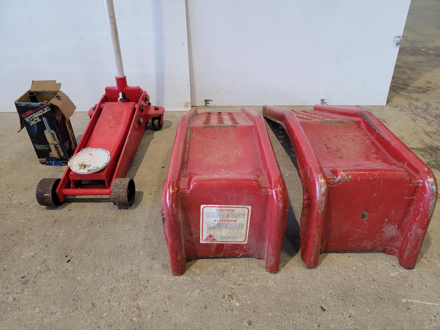 1426 (2) Car Ramps, Wilmar 6 Ton Hydraulic Bottle Jack and 3 Ton Floor Jack