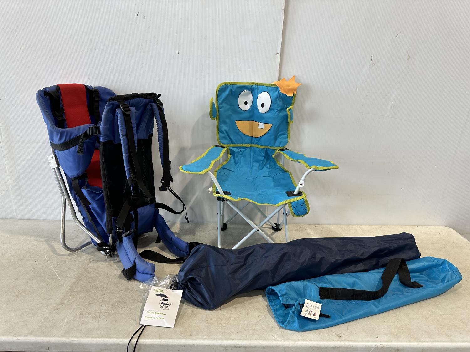 1142 (2) Lawn Chairs and a Backpack Baby Carrier