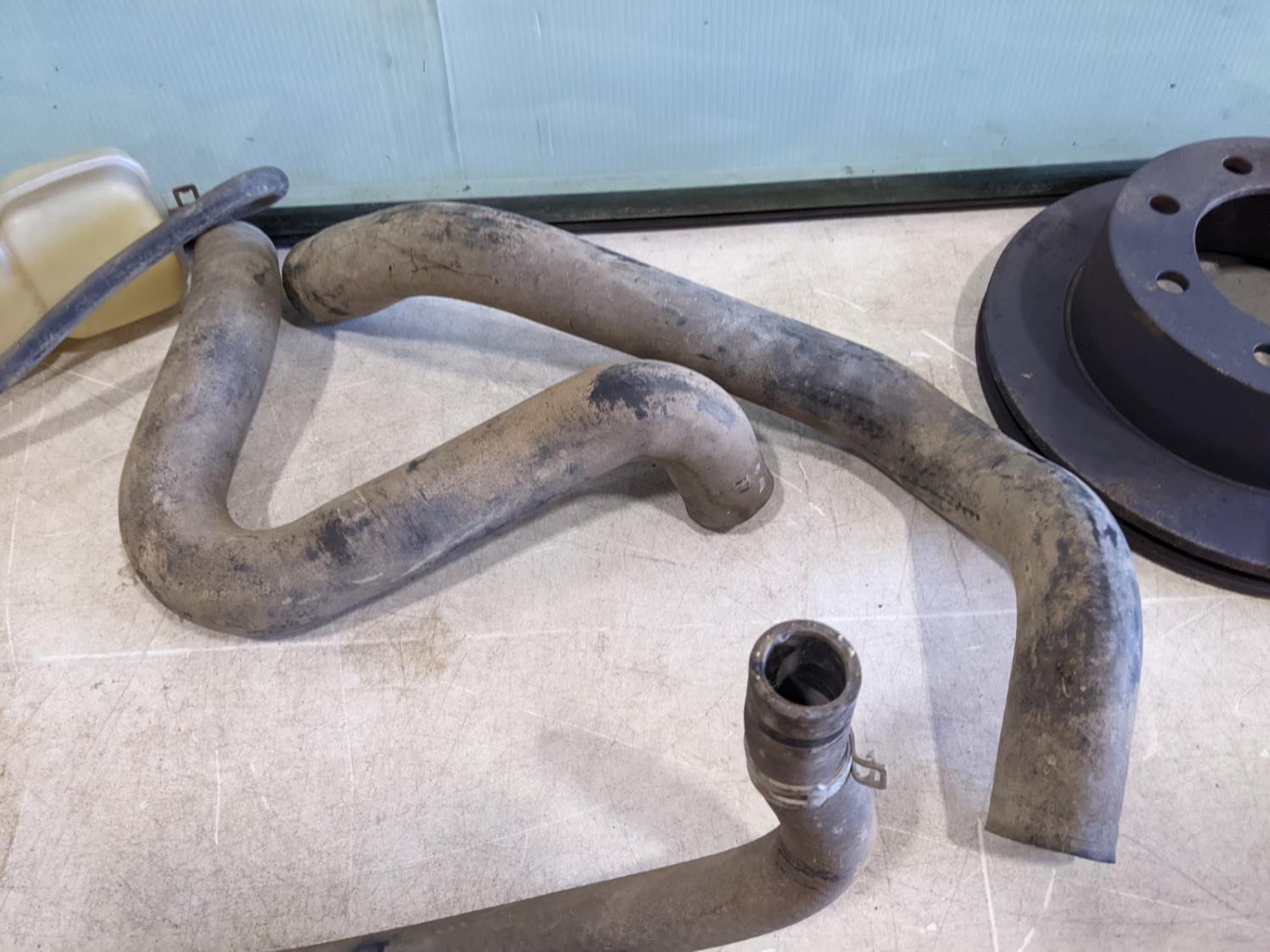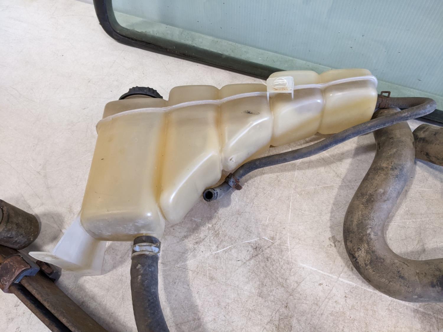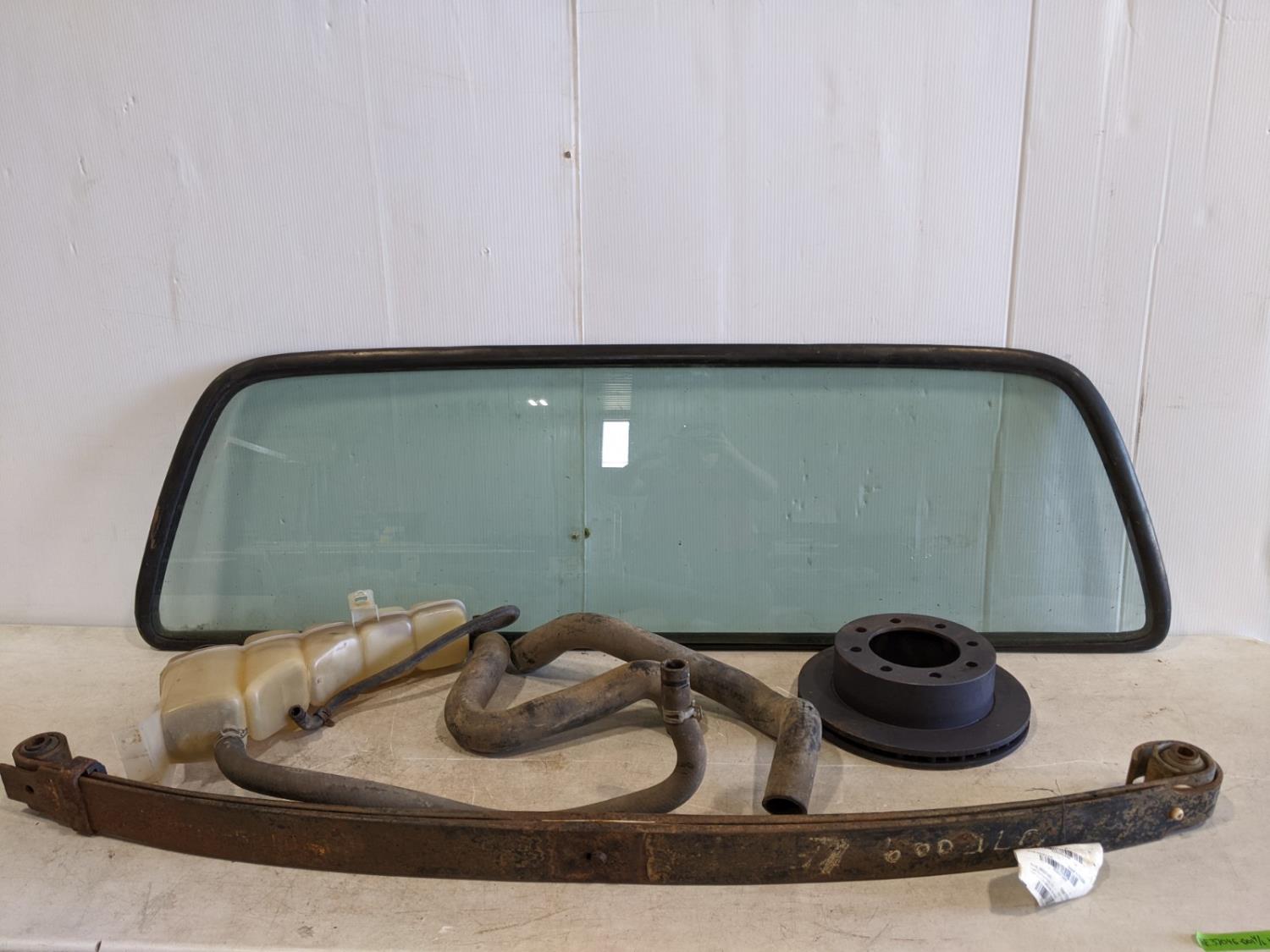 rear window with gasket, rotor, front leaf spring and coolant reservoir with (2) hoses