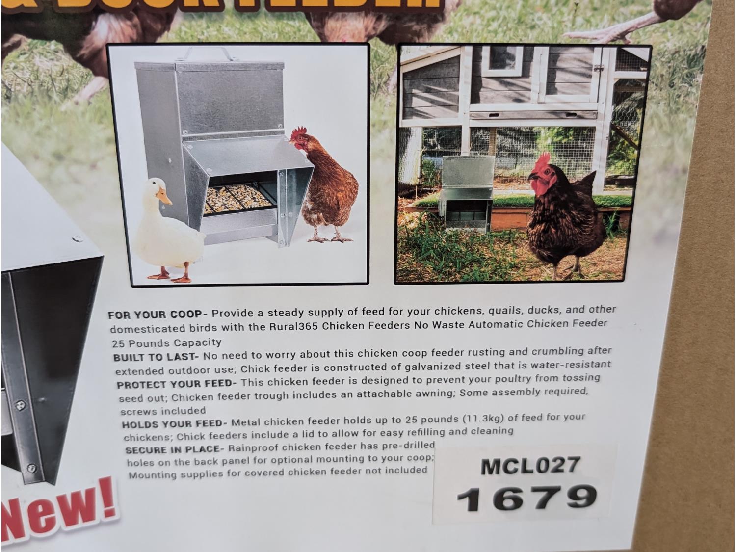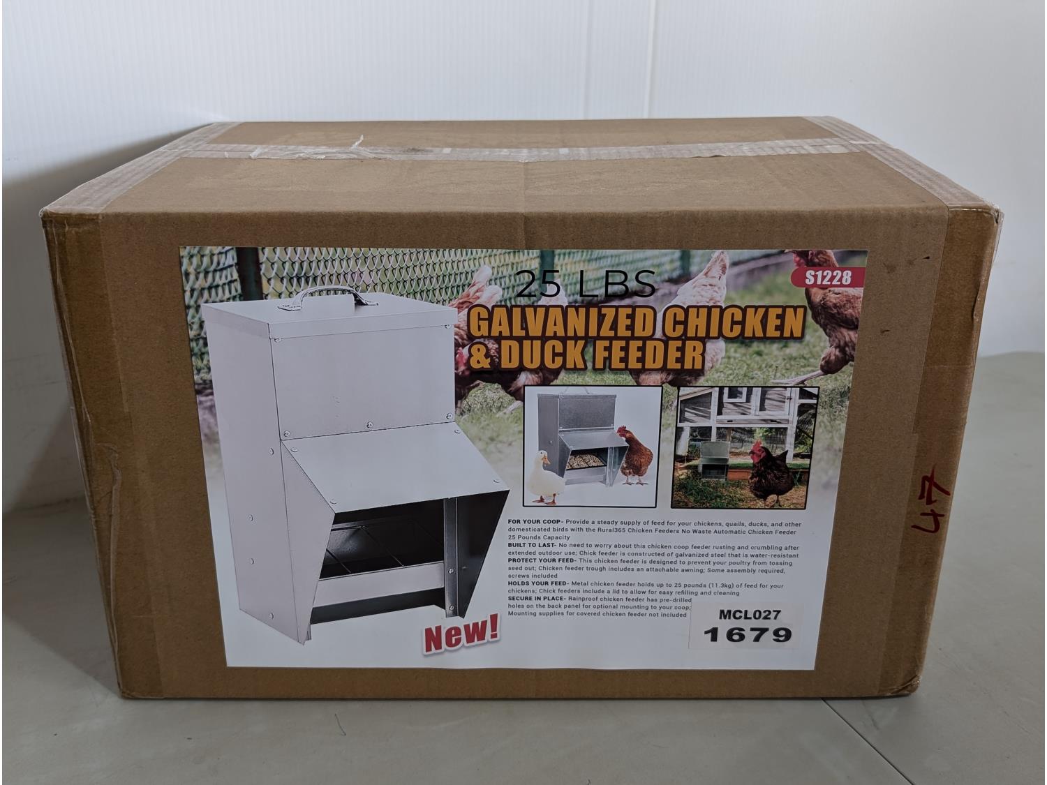 1072 25 lb Galvanized Chicken & Duck Feeder (Unused)