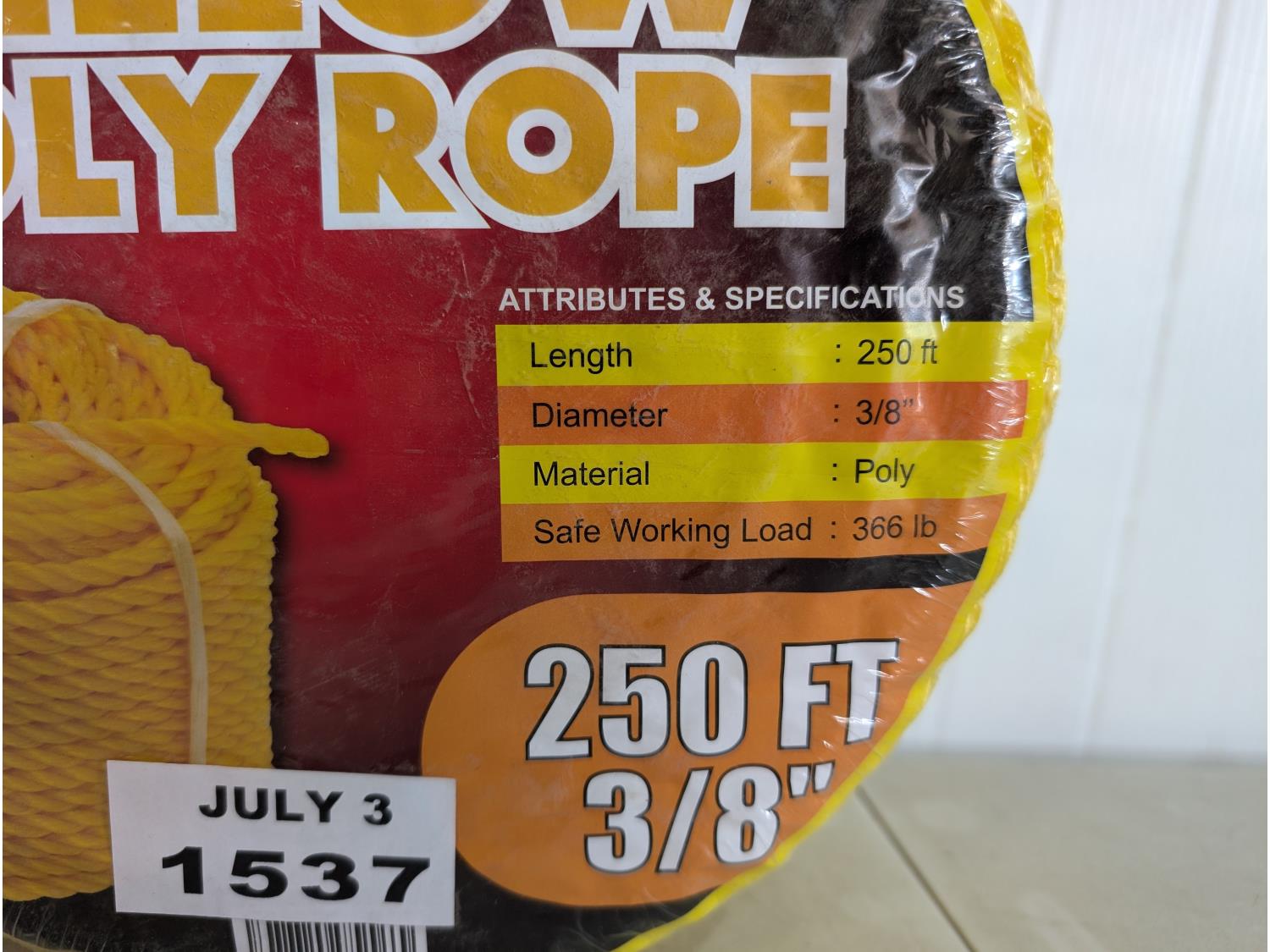 1100 250 Ft Roll of 3/8 Inch Yellow Poly Rope (Unused)