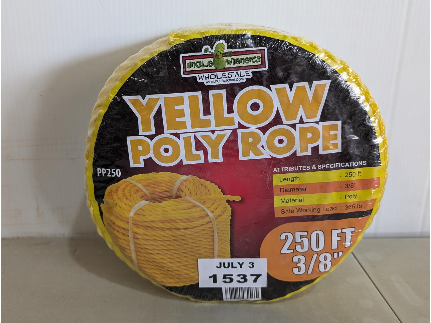 1210 250 Ft Roll of 3/8 Inch Yellow Poly Rope (Unused)
