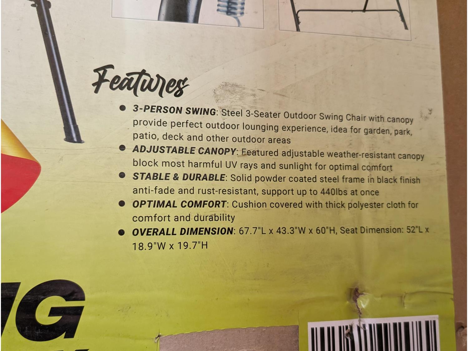 1079 3 Person Garden Swing Chair (Unused)