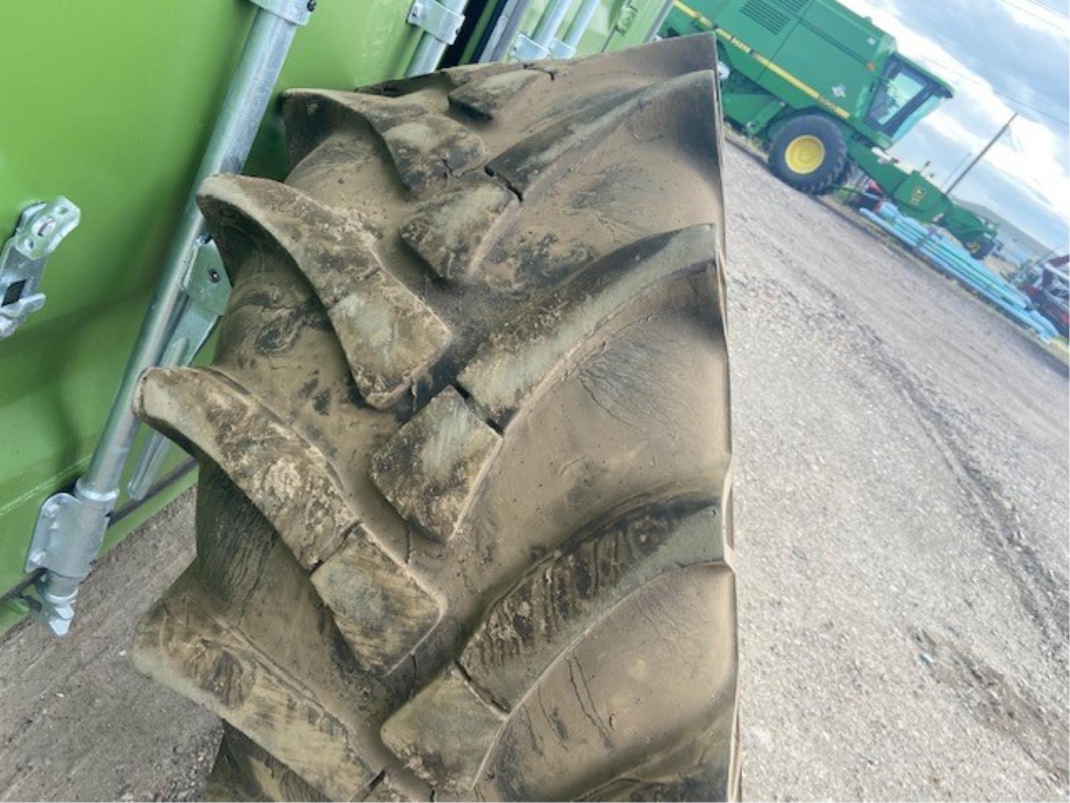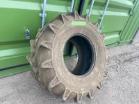 5 inch connection to exhaust pipe (unused), 42 inch long x 6-3/4 inch wide, Solideal 18-19.5 tubeless implement tire approximately 40% tread