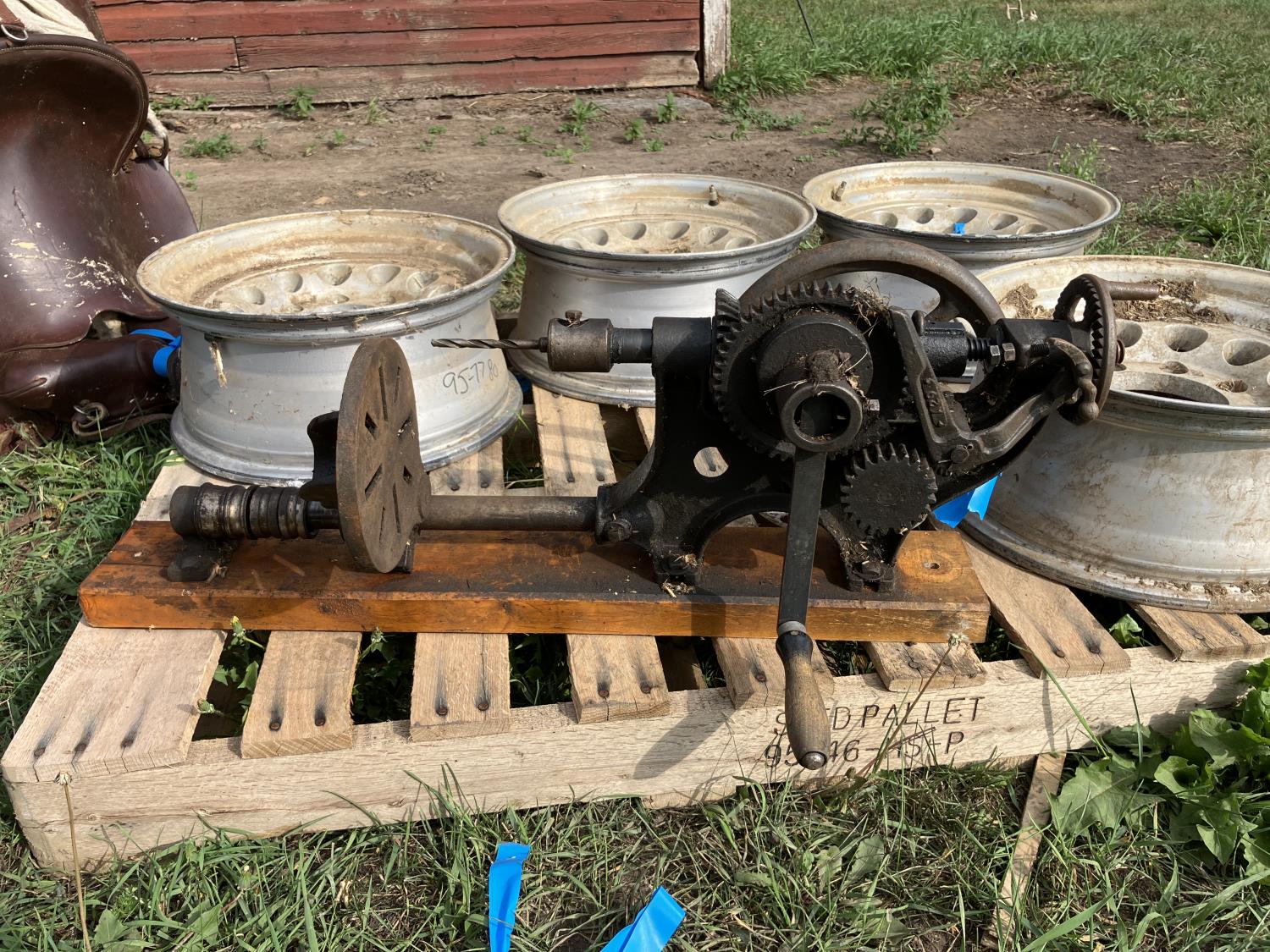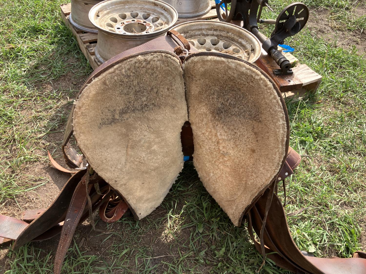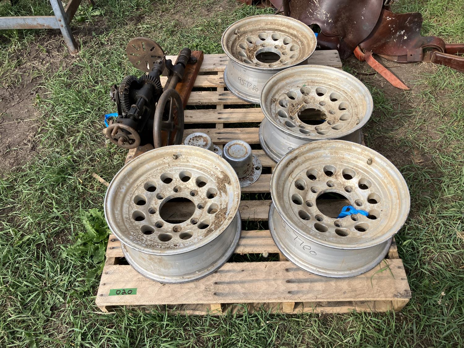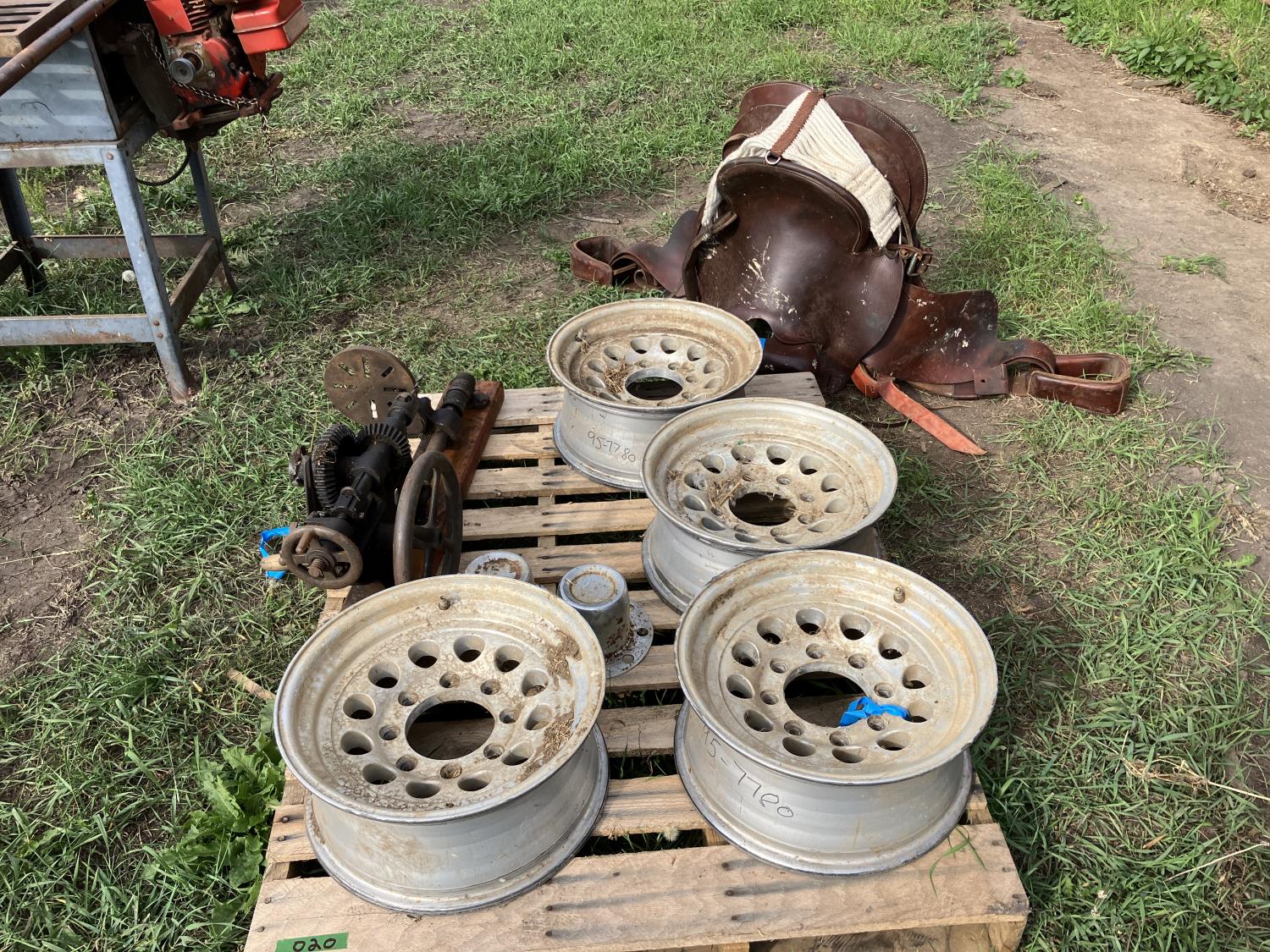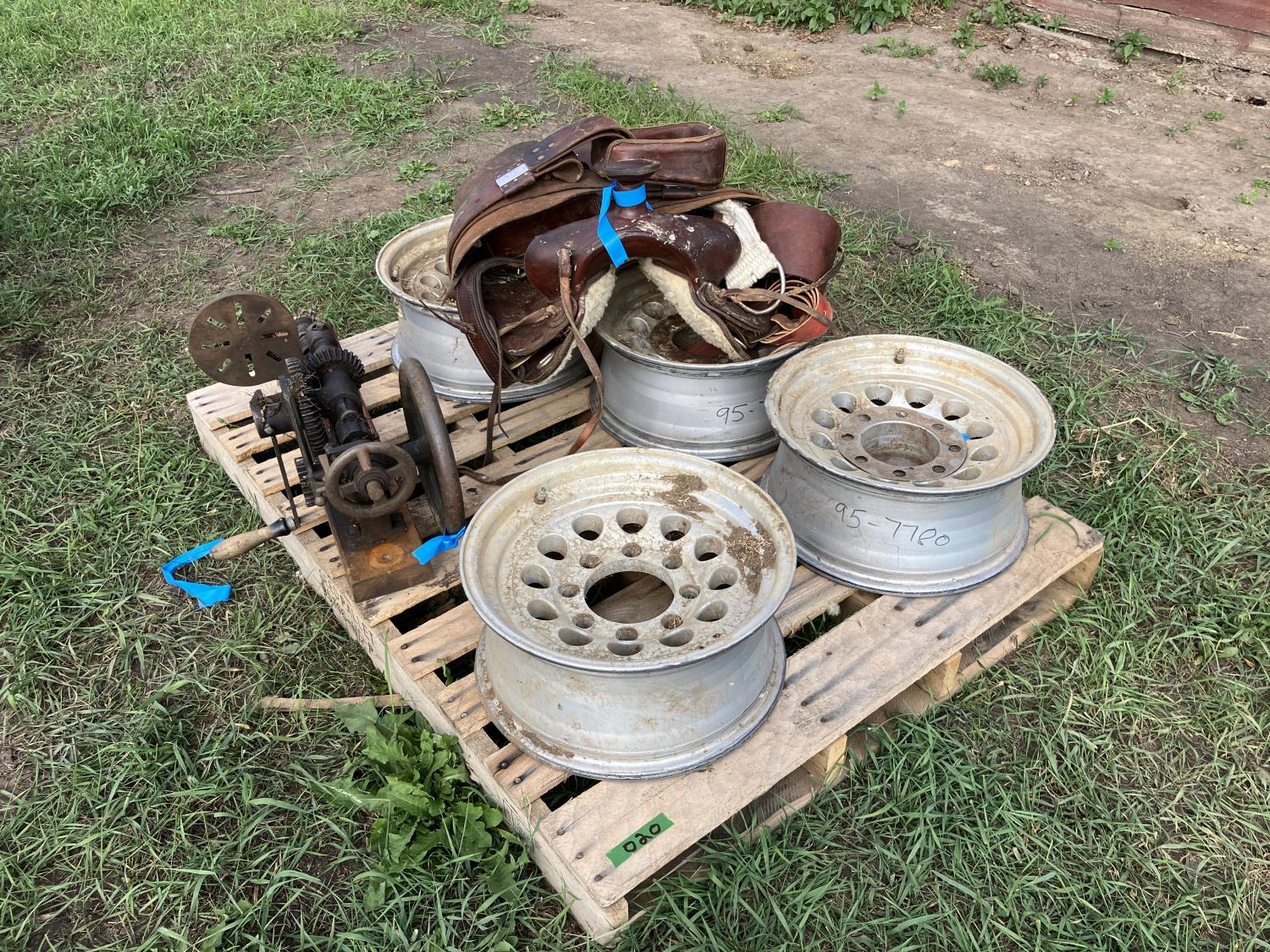 2152 (4) Aluminum 8 Bolt Rims, 15 Inch Saddle & Antique Post Drill
