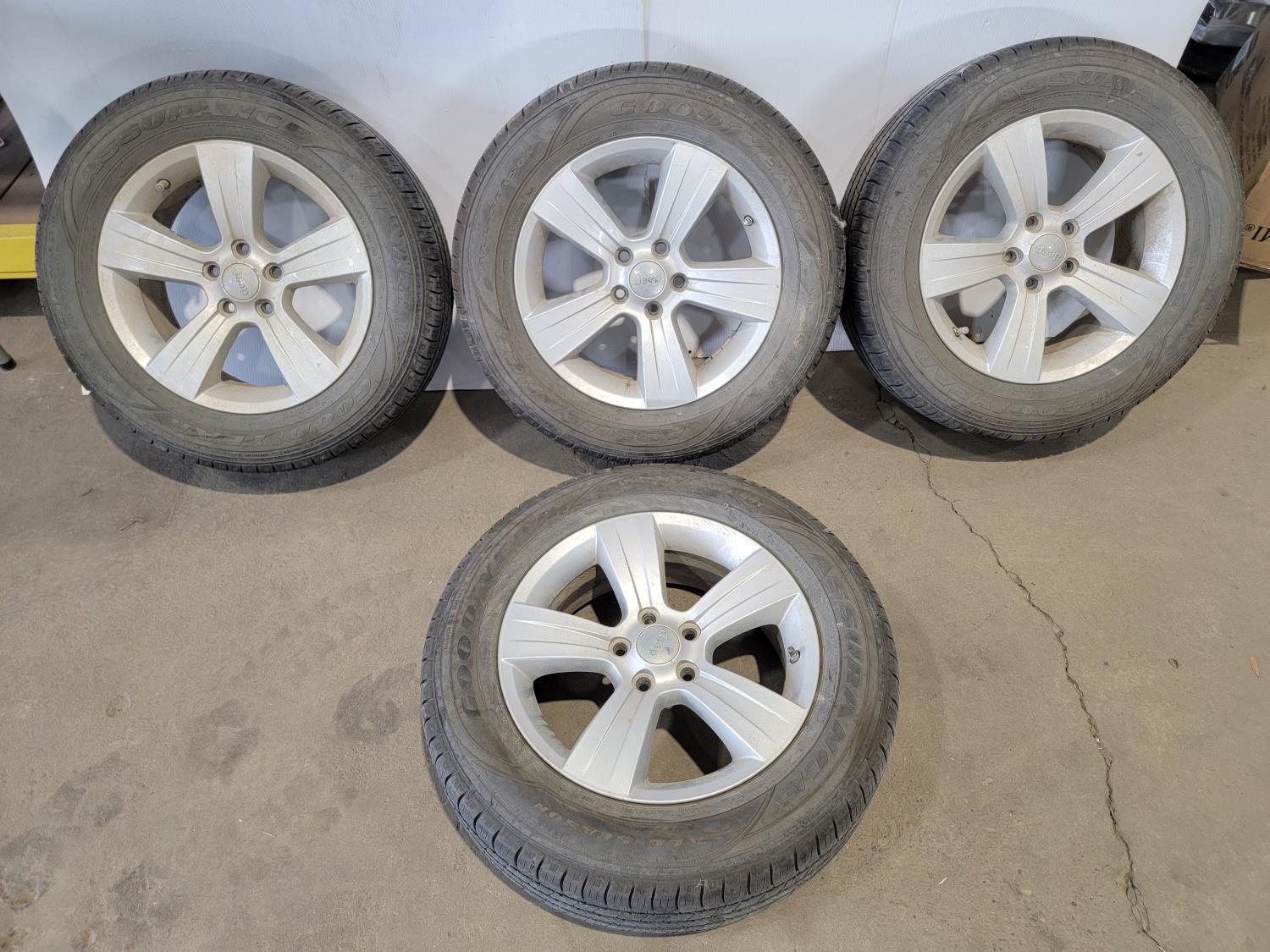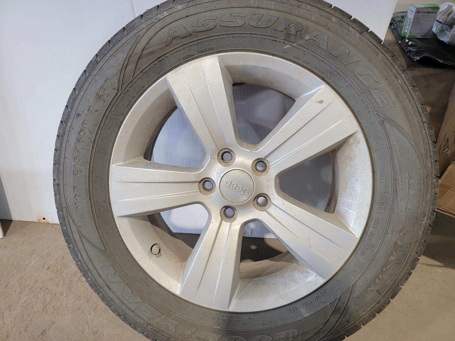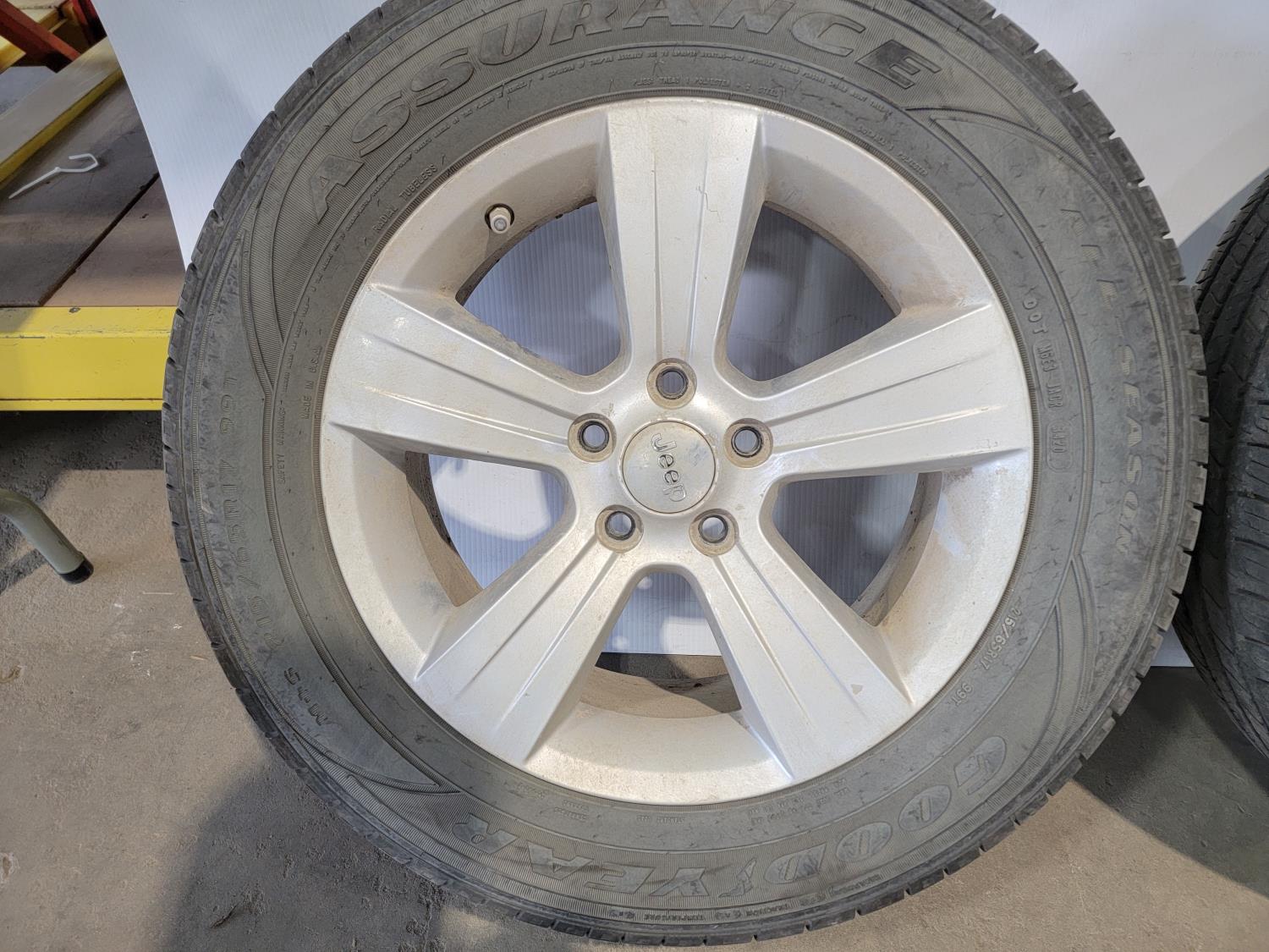 1449 (4) Goodyear Assurance 215/65R17 Tires On 5 Bolt Jeep Rims and Lug Nuts (Unused)