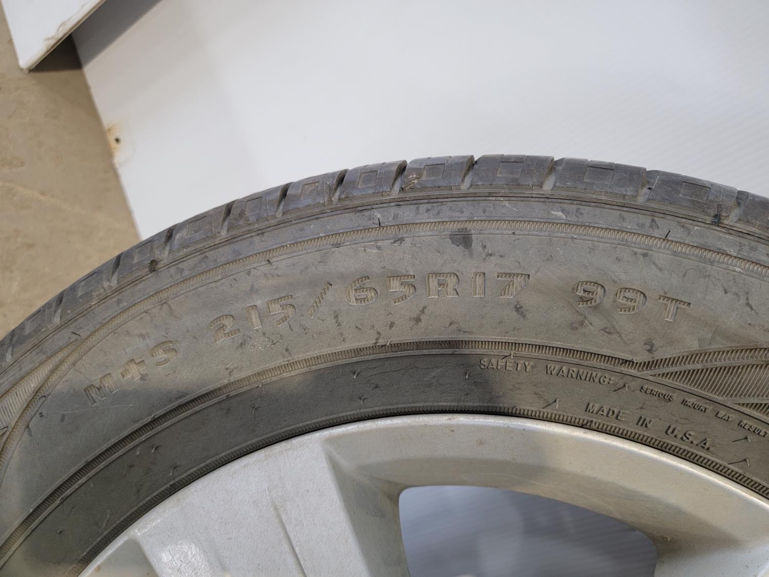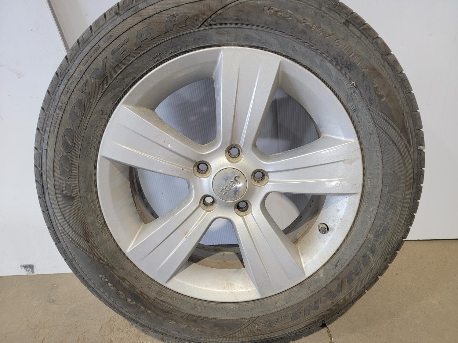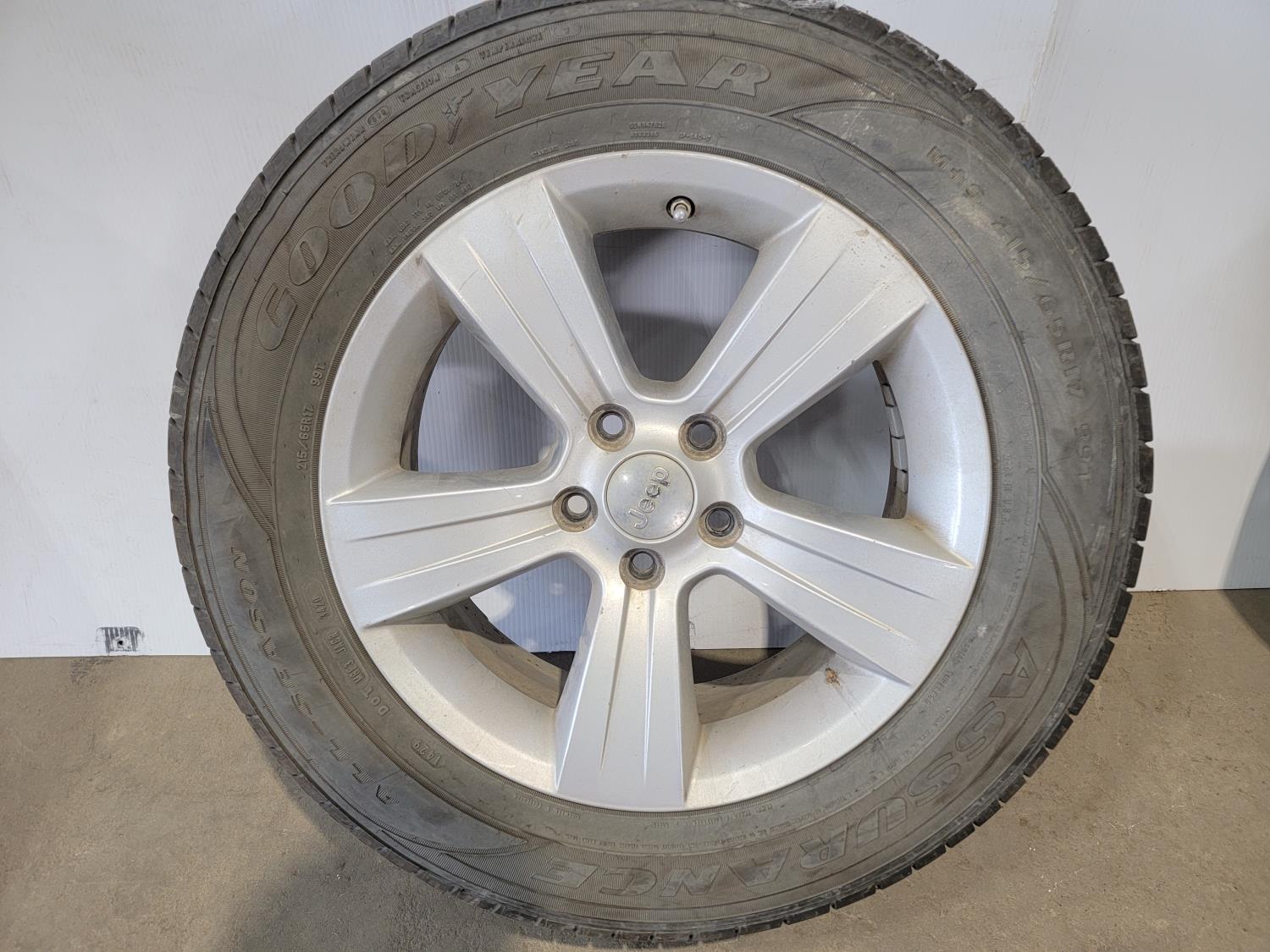 1449 (4) Goodyear Assurance 215/65R17 Tires On 5 Bolt Jeep Rims and Lug Nuts (Unused)
