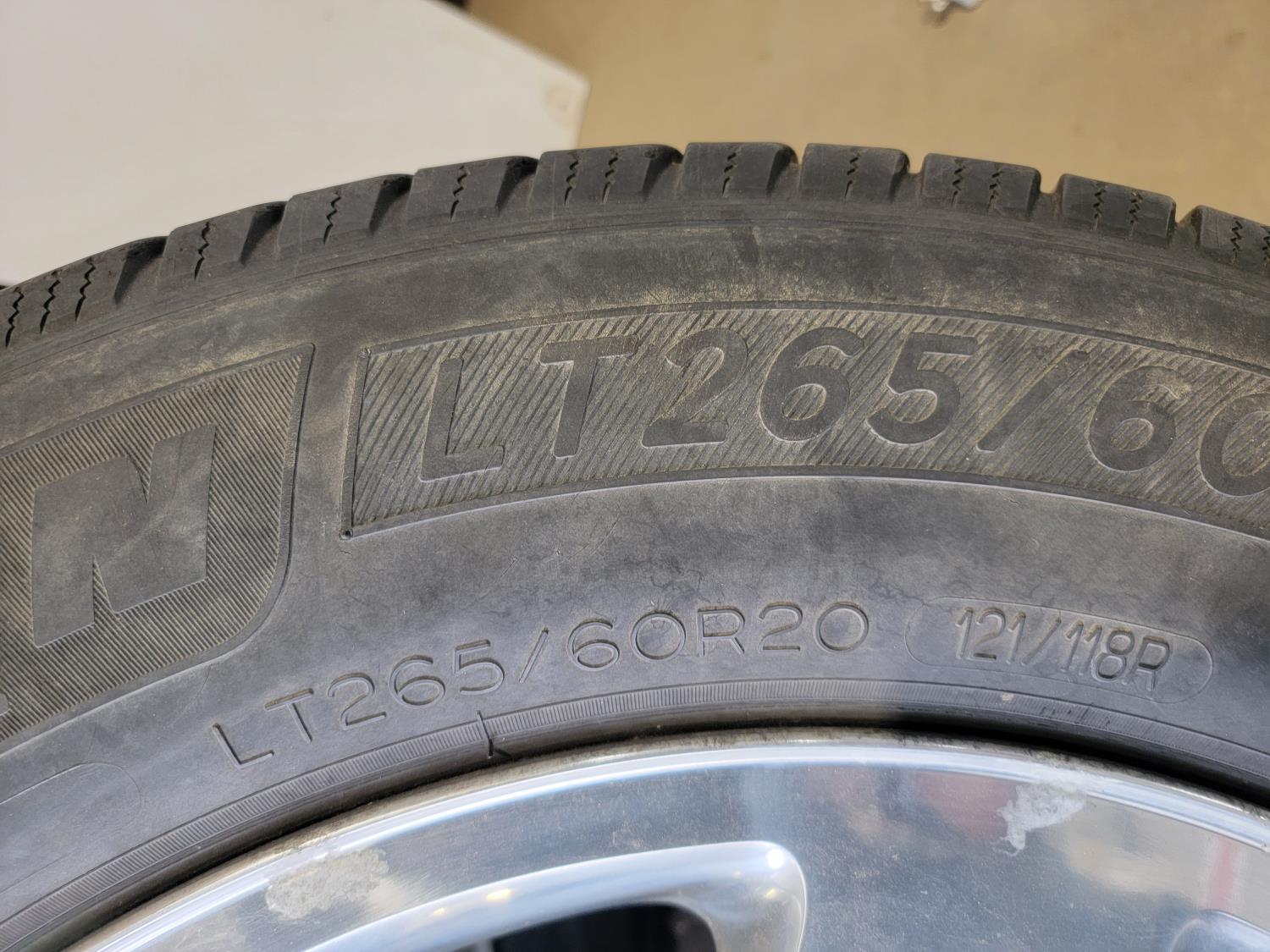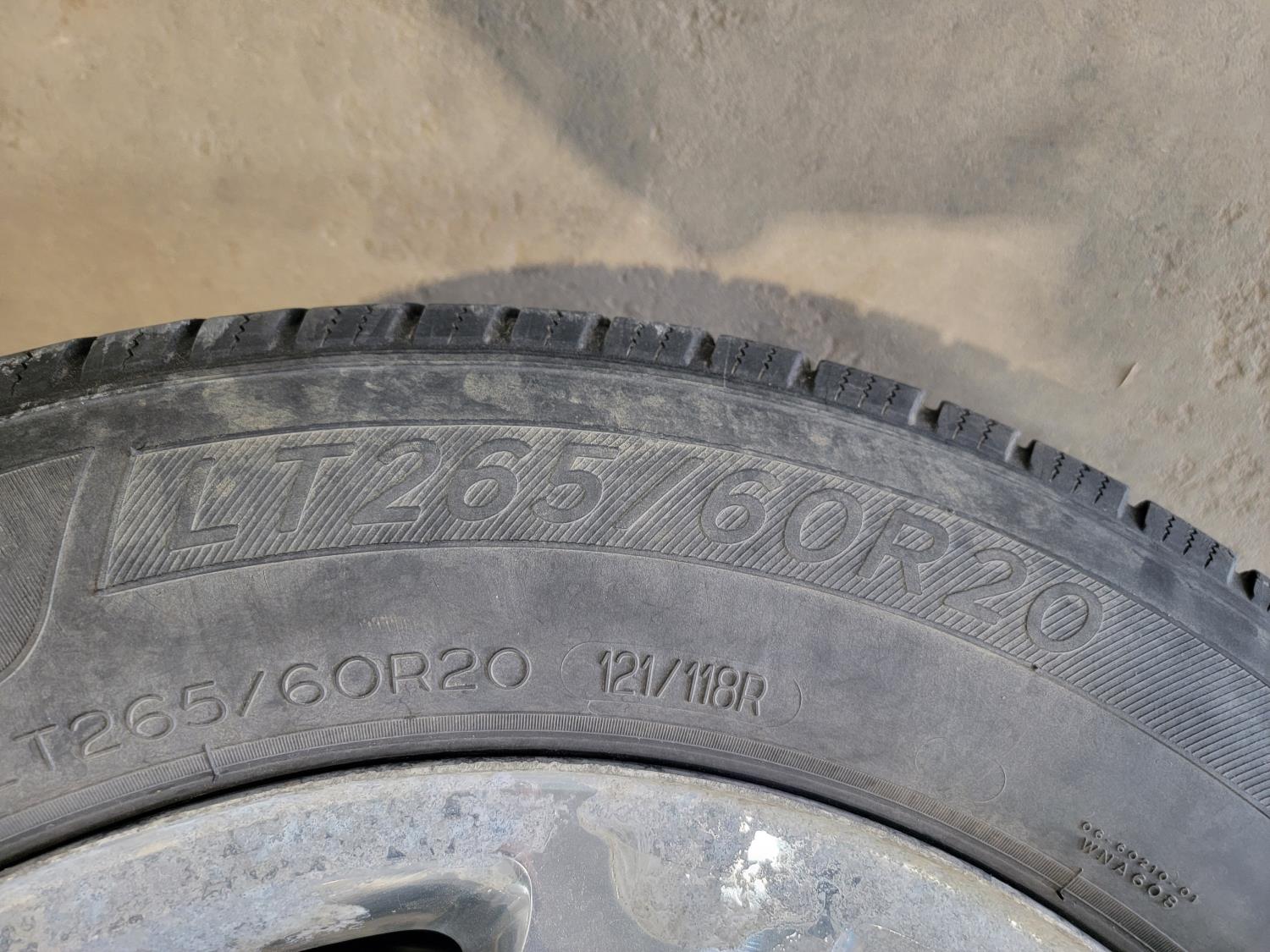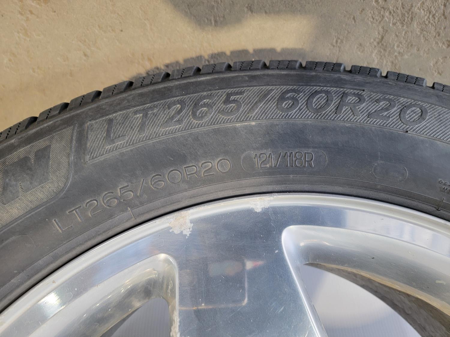 1947 (4) Michelin Defender 265/60R20 Tires and Box of Lug Nuts