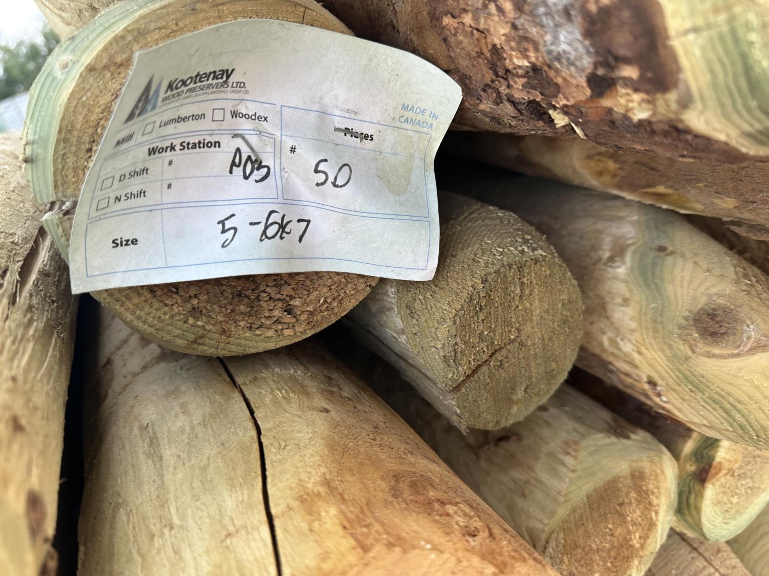 2023 (50) 5-6 Inch X 7 Ft Treated Pointed Post (Unused)
