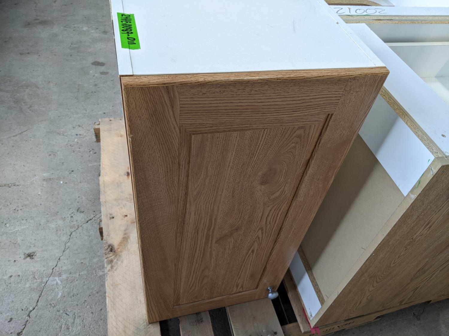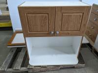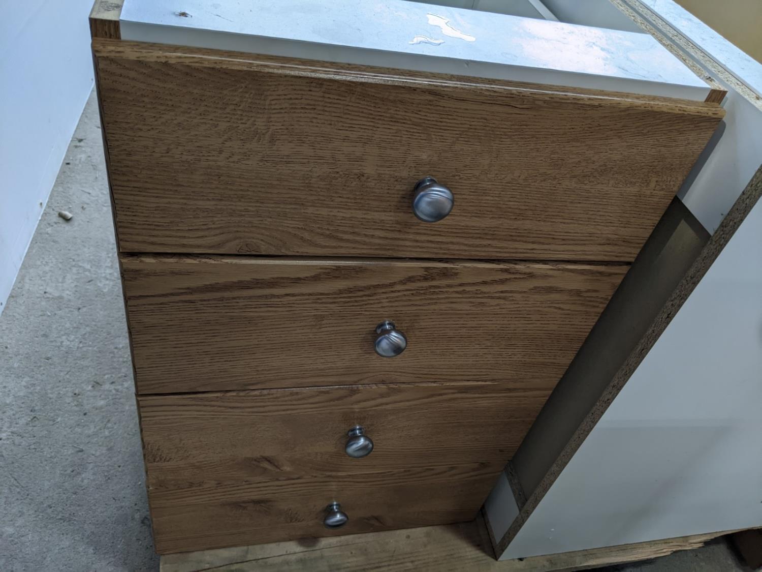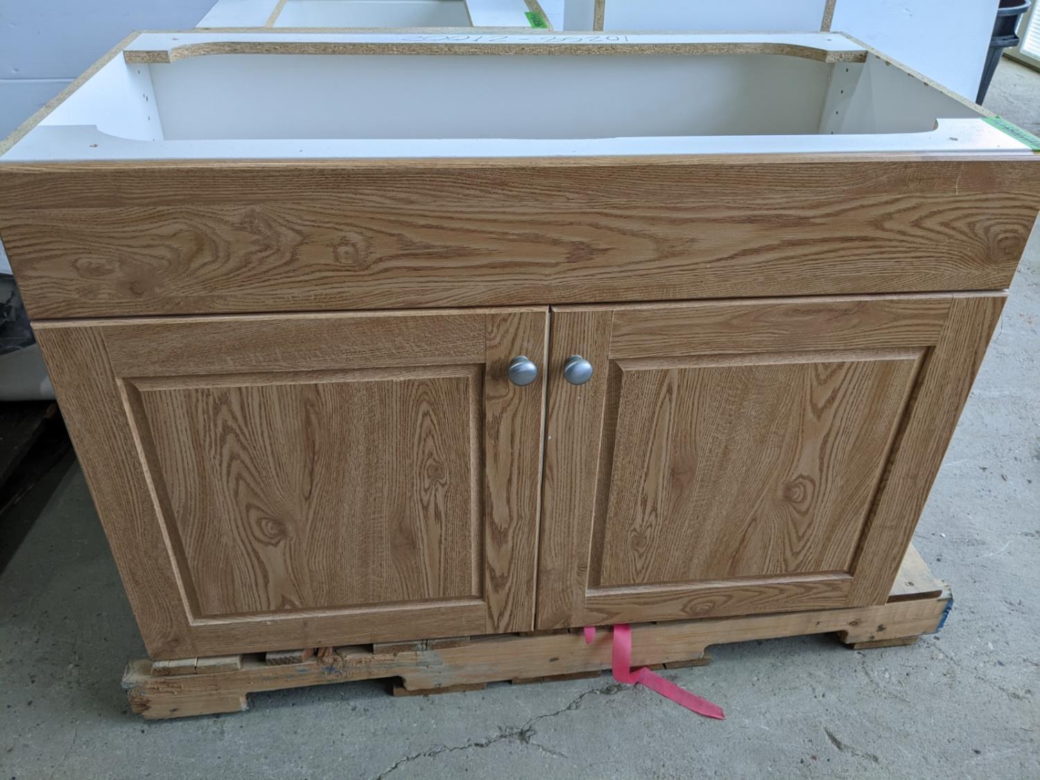 Vanity 41-1/2 inch w x 21-1/2 inch d x 27 inch h, 4 drawer base 18 inch w x 21-1/2 inch d x 27 inch h, counter top 60 inch w x 21-1/2 inch d, 2 door upper 30 inch w x 12-1/2 inch d x 31 inch h, 1 door upper 15 inch w x 12-1/2 inch d x 31 inch h