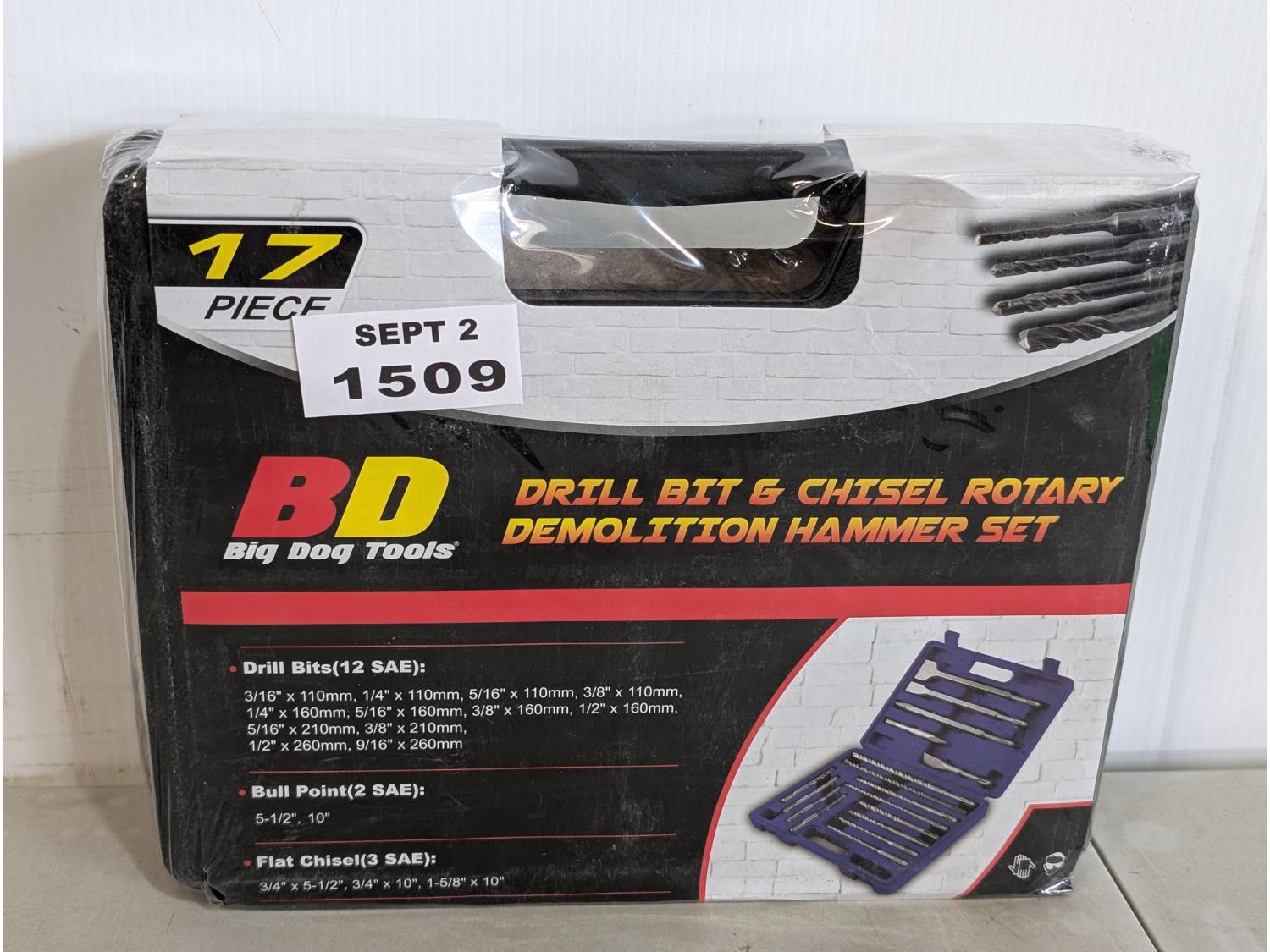 1180 Big Dog Tools Drill Bit & Chisel Rotary Demolition Hammer Set (Unused)