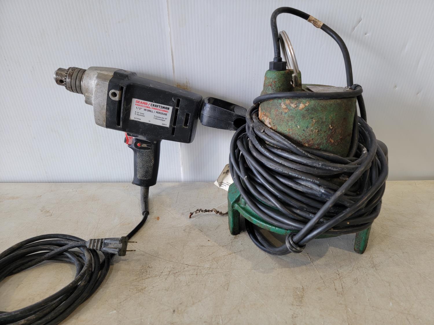 1161 Craftsman Professional 1/2 Inch Electric Drill and Myers Me3h-11P Sump Pump