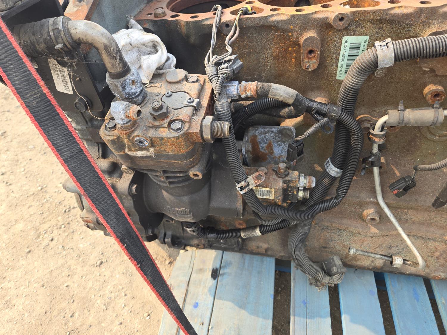 2098 Detroit DDEC5 Engine Block with Crankshaft and Air Compressor