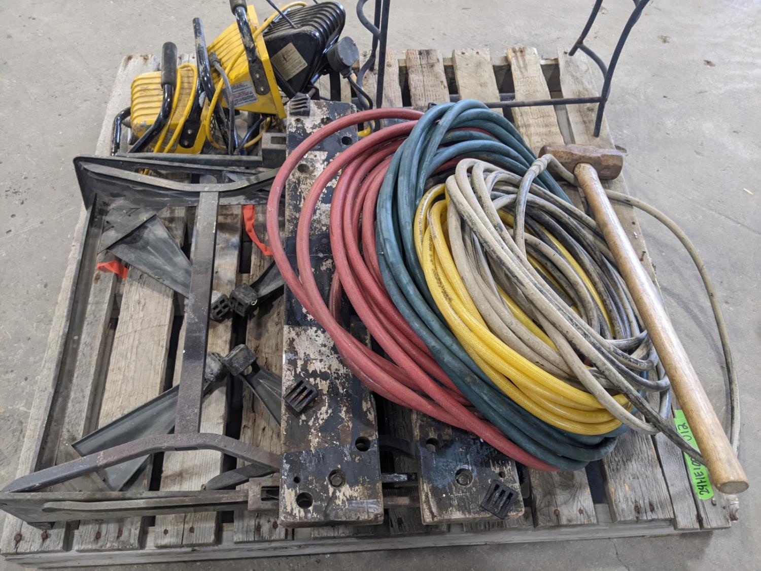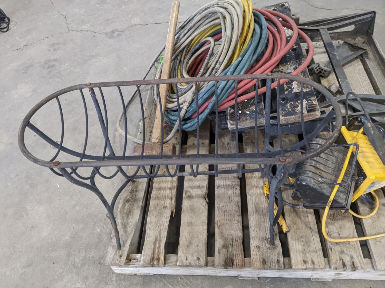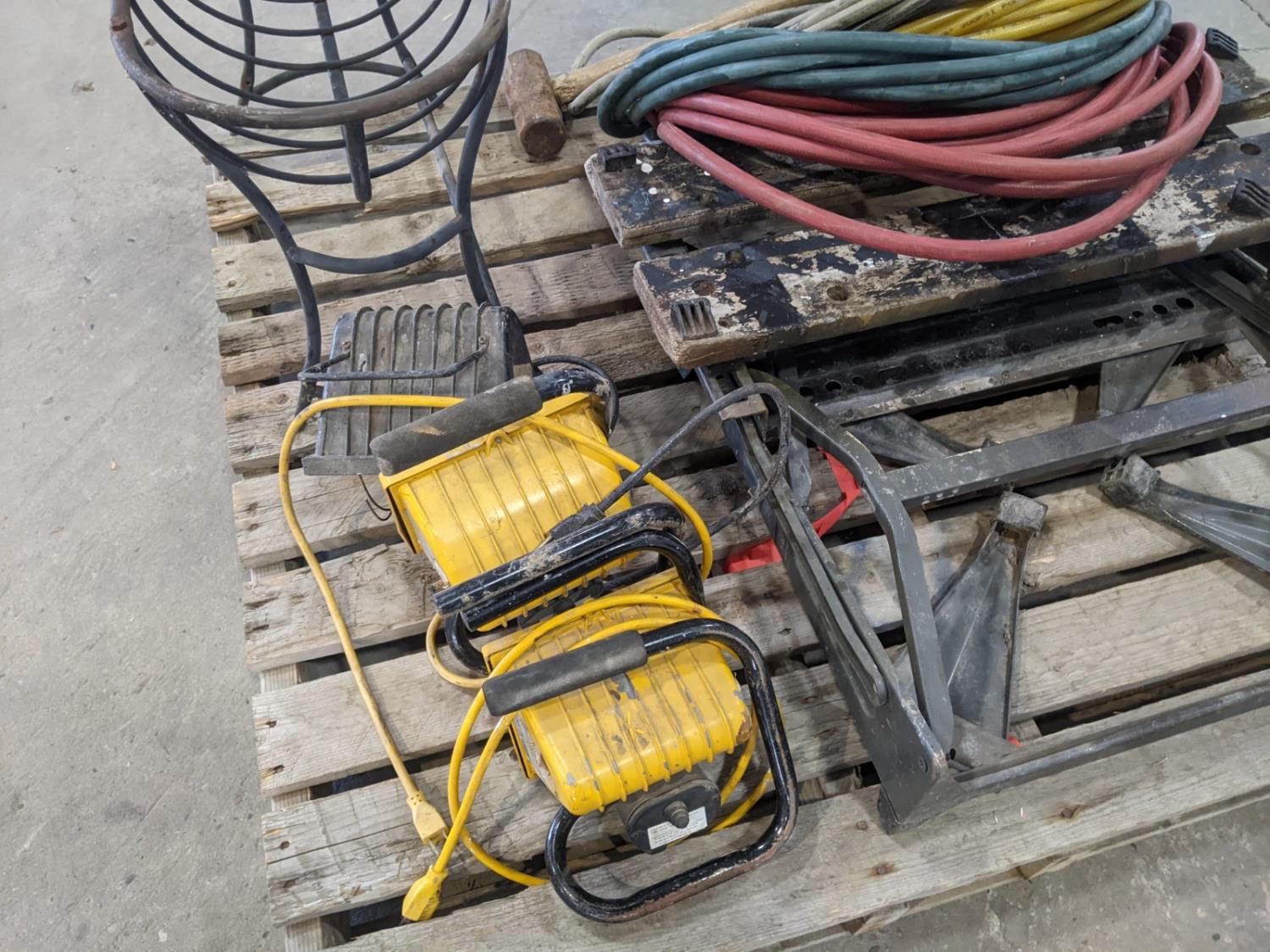 1472 Folding Work Bench, Hoses, Sledge Hammer and Planter Stand
