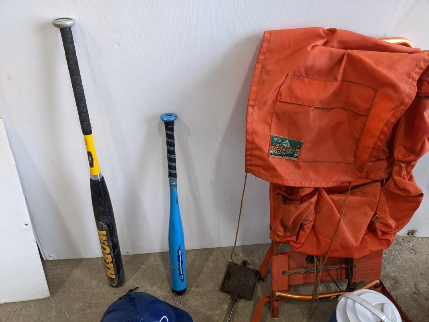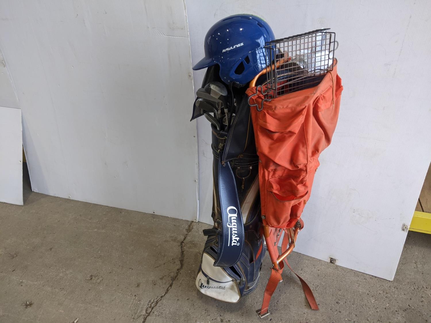 1168 Golf Clubs and Bag, (2) Baseball Bats and Helmet, Rigid Frame Backpack