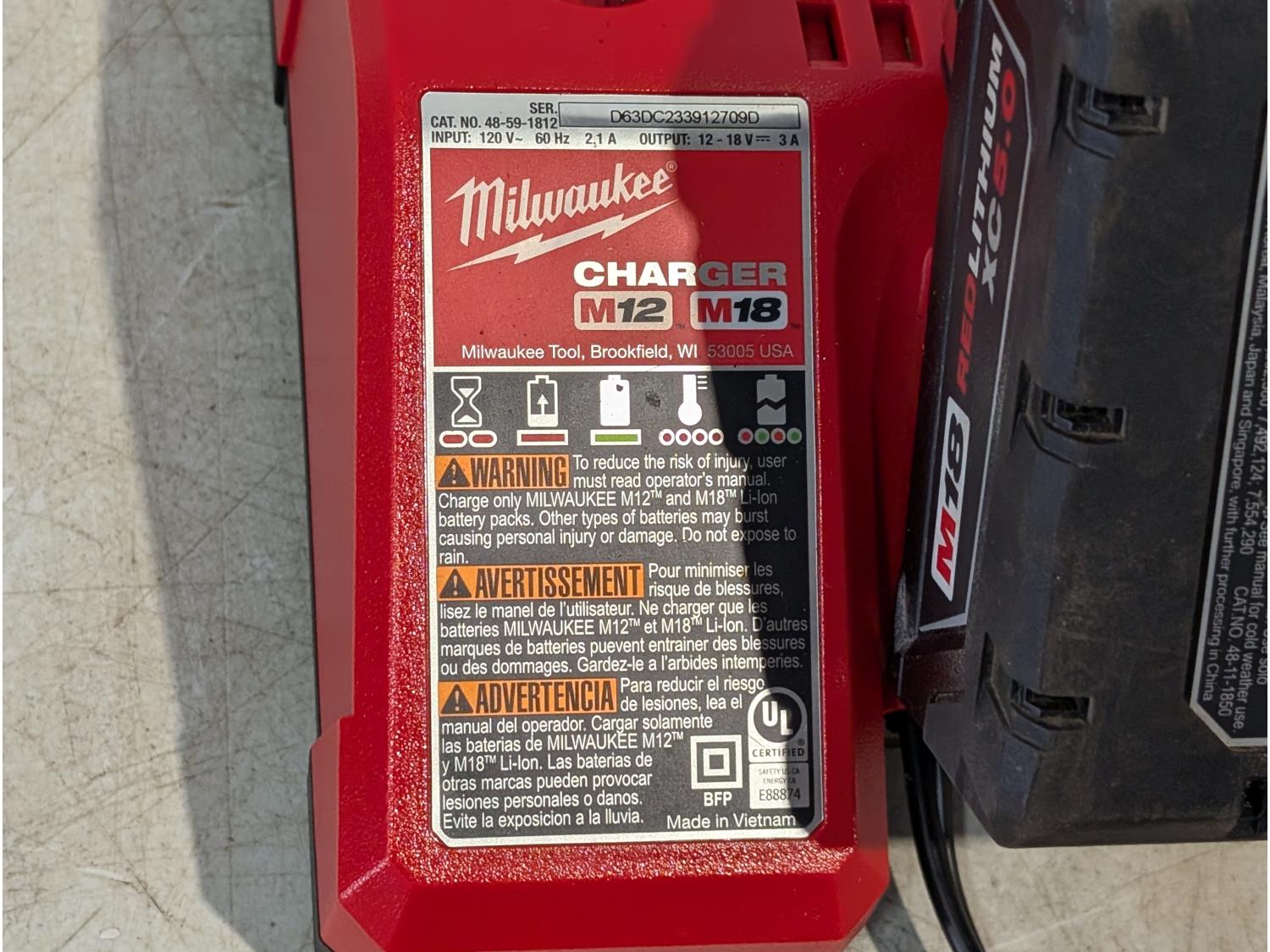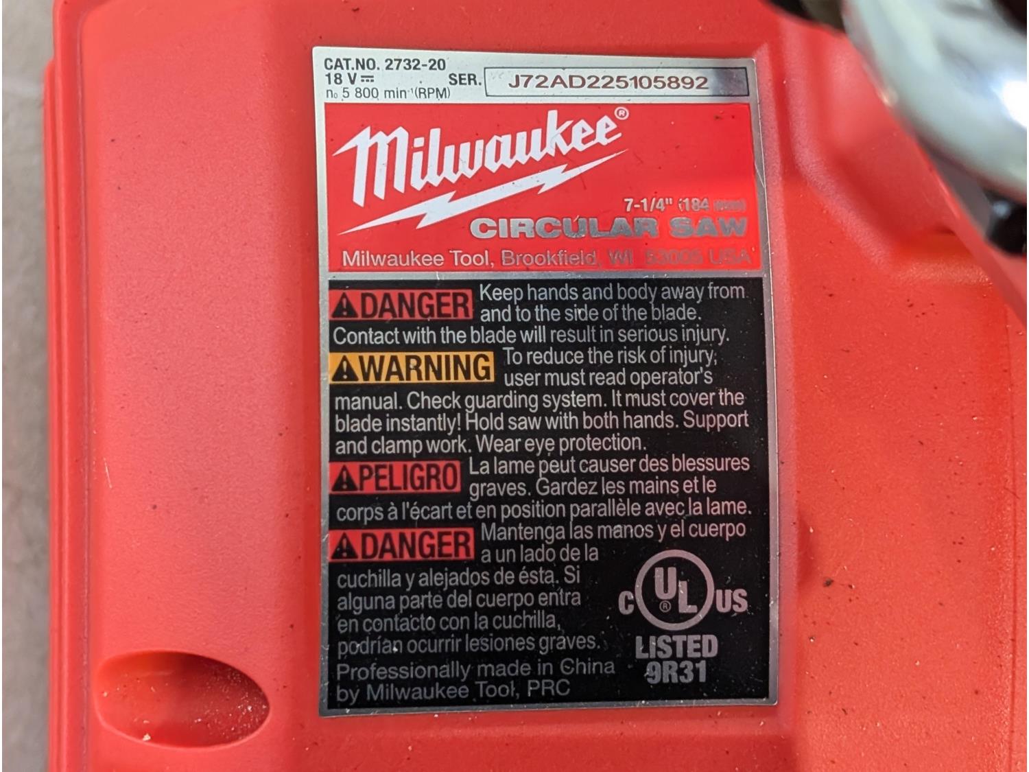 1713 Milwaukee Fuel M18 2732-20 7-1/4 Inch Circular Saw with (2) Batteries and Charger