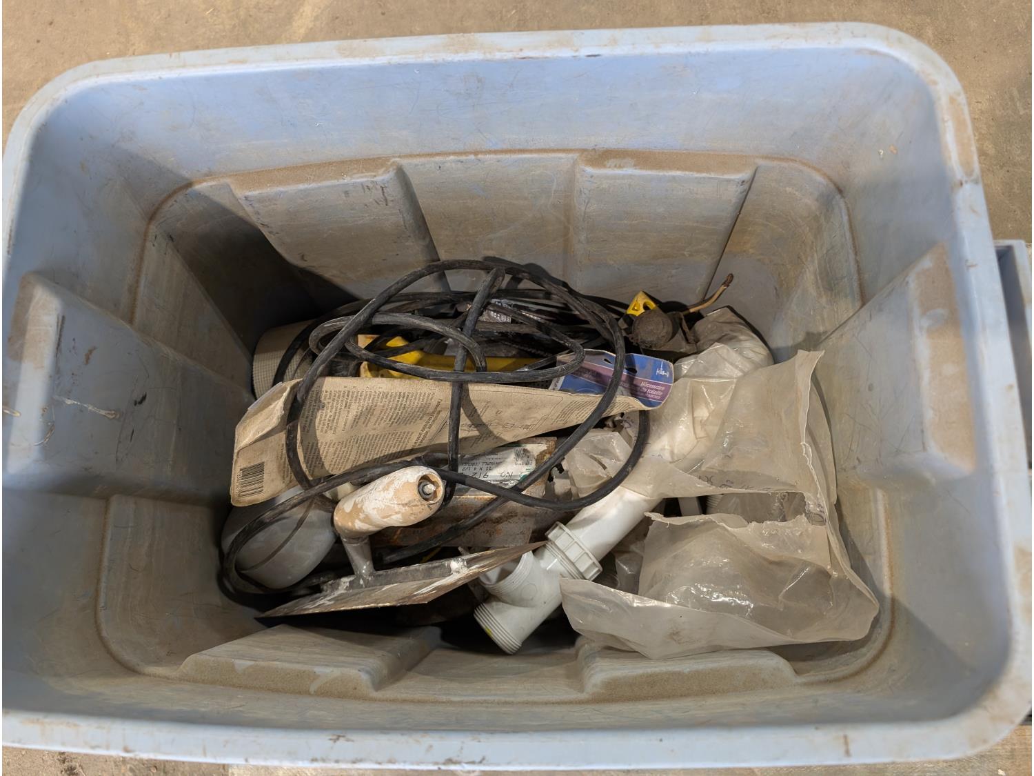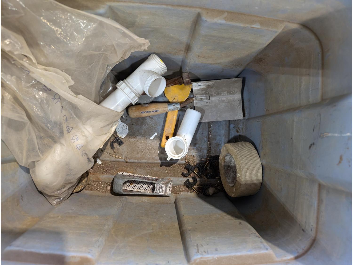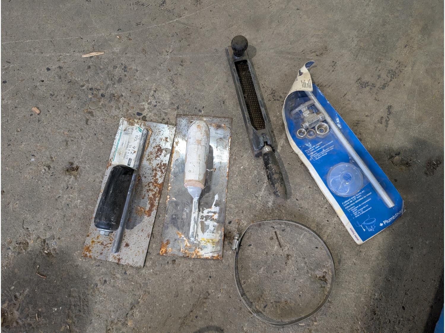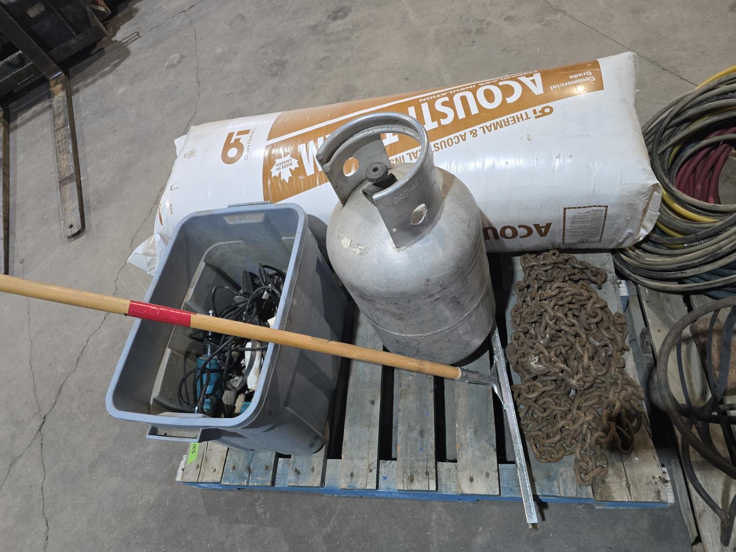 24 inch squeegee, (2) drywall drills, insulation, aluminum propane tank