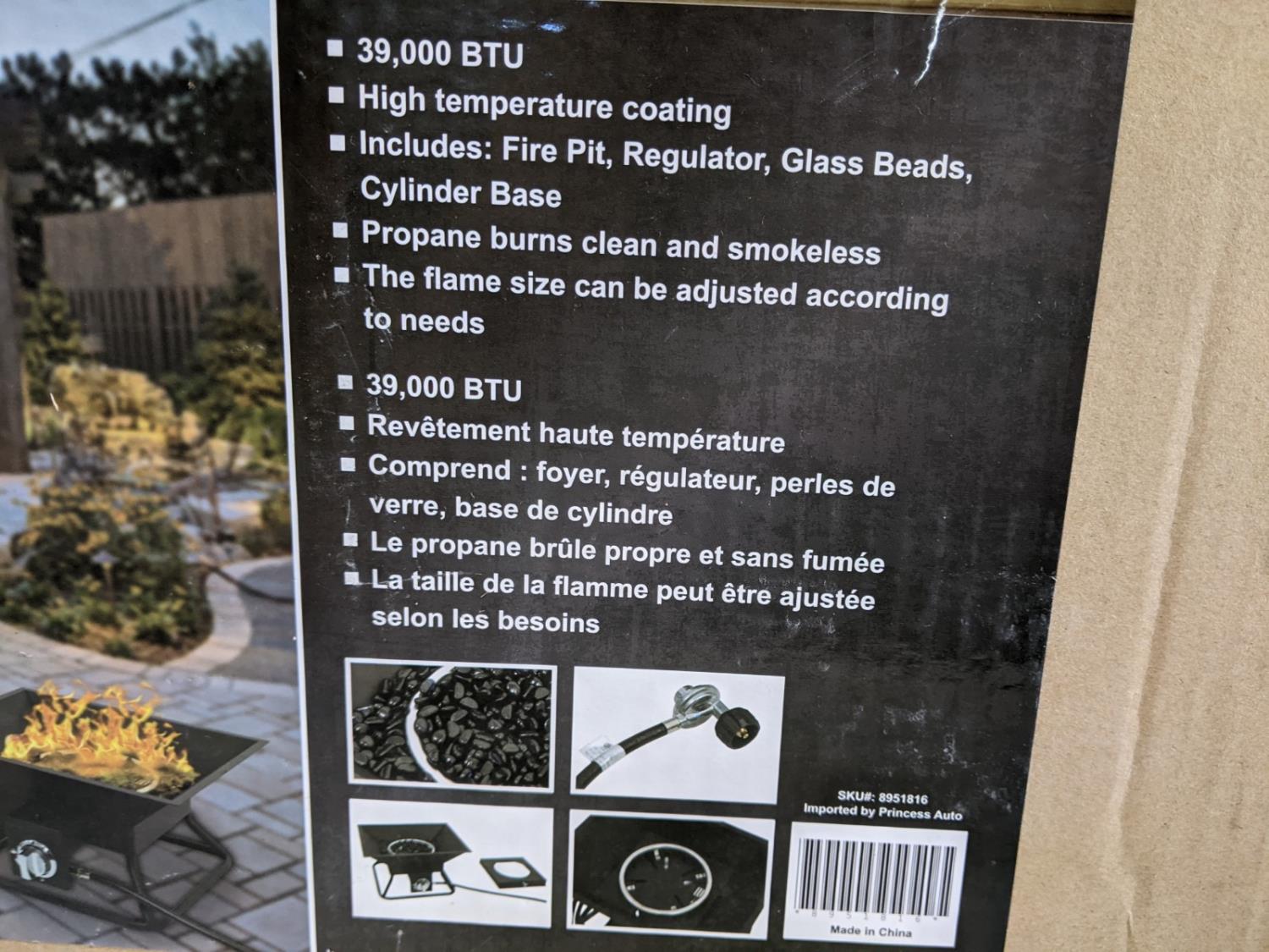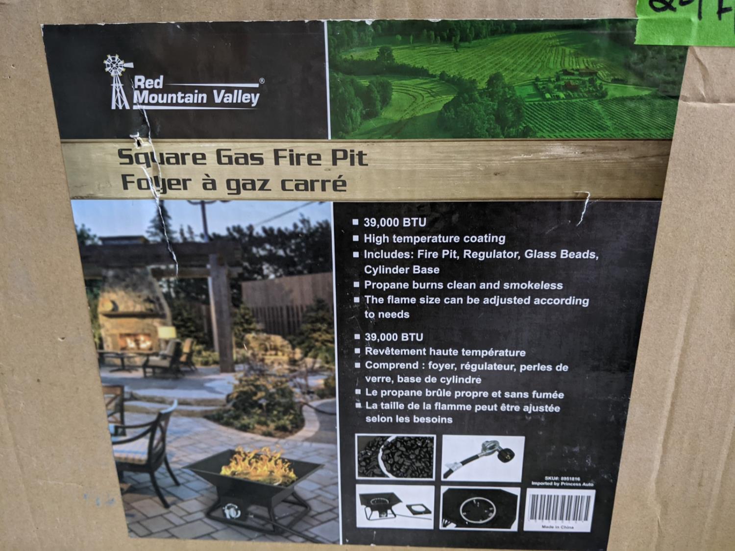 1732 Red Mountain Valley Square Gas Fire Pit (Unused)