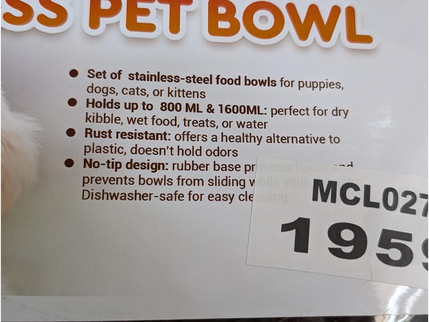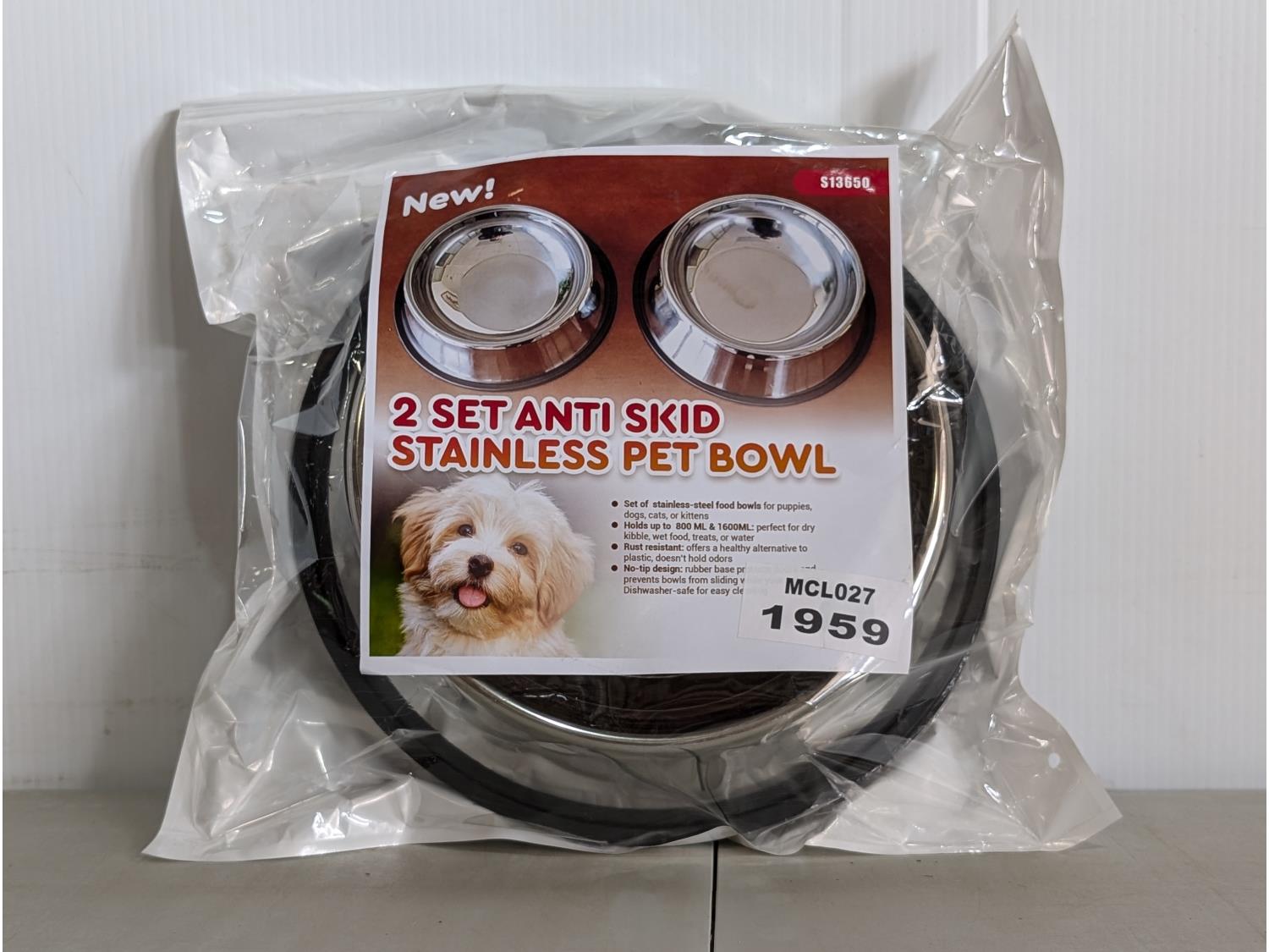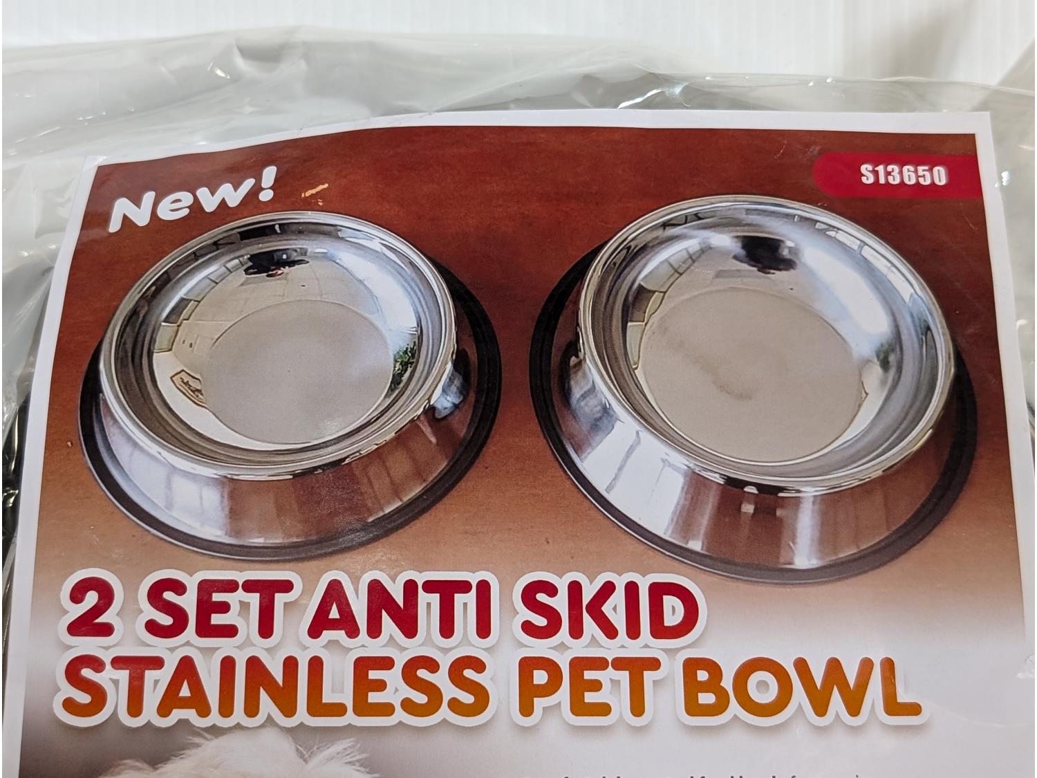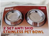 1058 Set of (2) Anti-Skid Stainless Steel Pet Bowls (Unused)