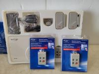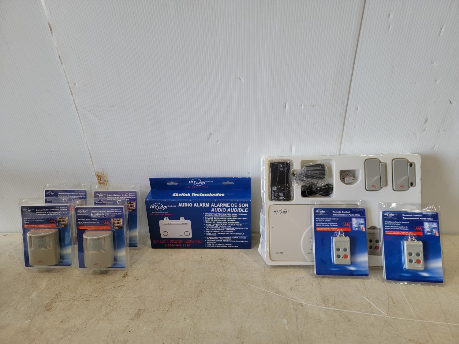 Audio alarm, (5) motion detectors, (3) remotes