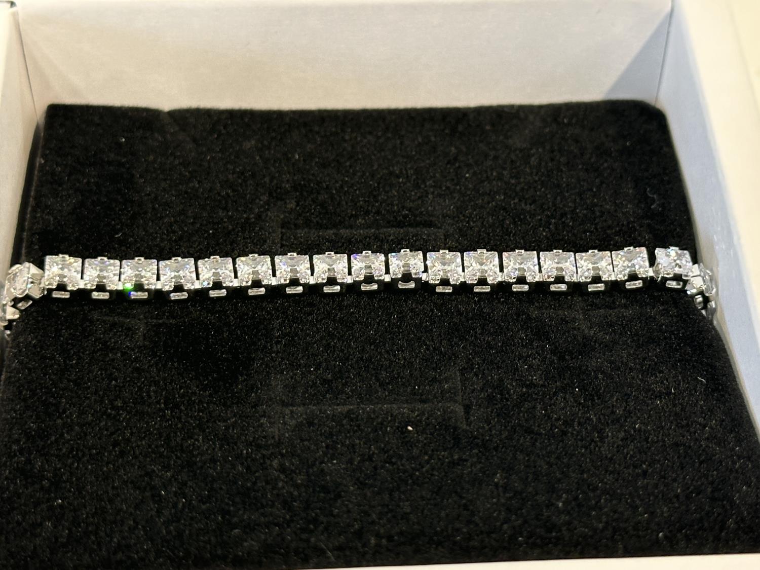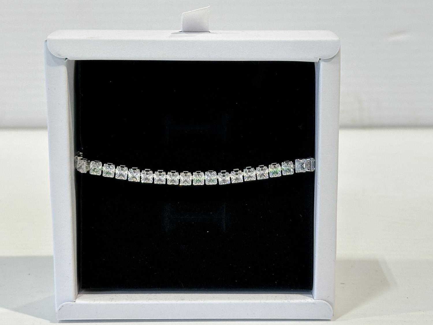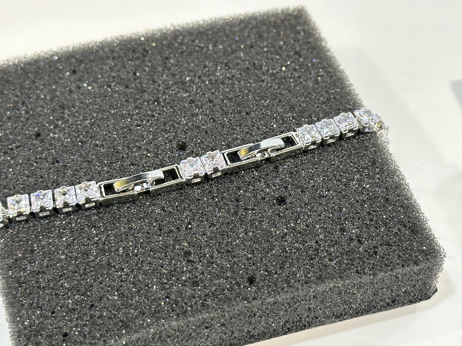 1787 Smartlife Platinum Plated 4.0 mm Princess Cut Tennis Bracelet (Unused)