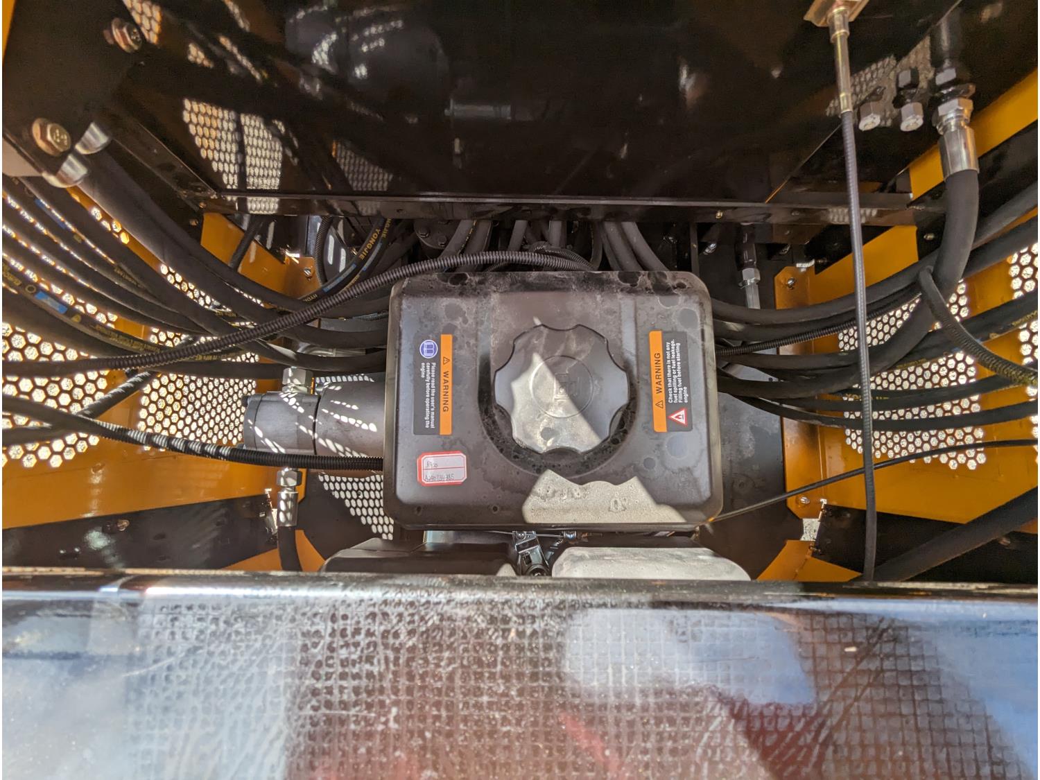 Open station, gas engine, 14 inch dig bucket, manual thumb, backfill blade, Oil Leak Noted as pictures show, 7 inch rubber tracks