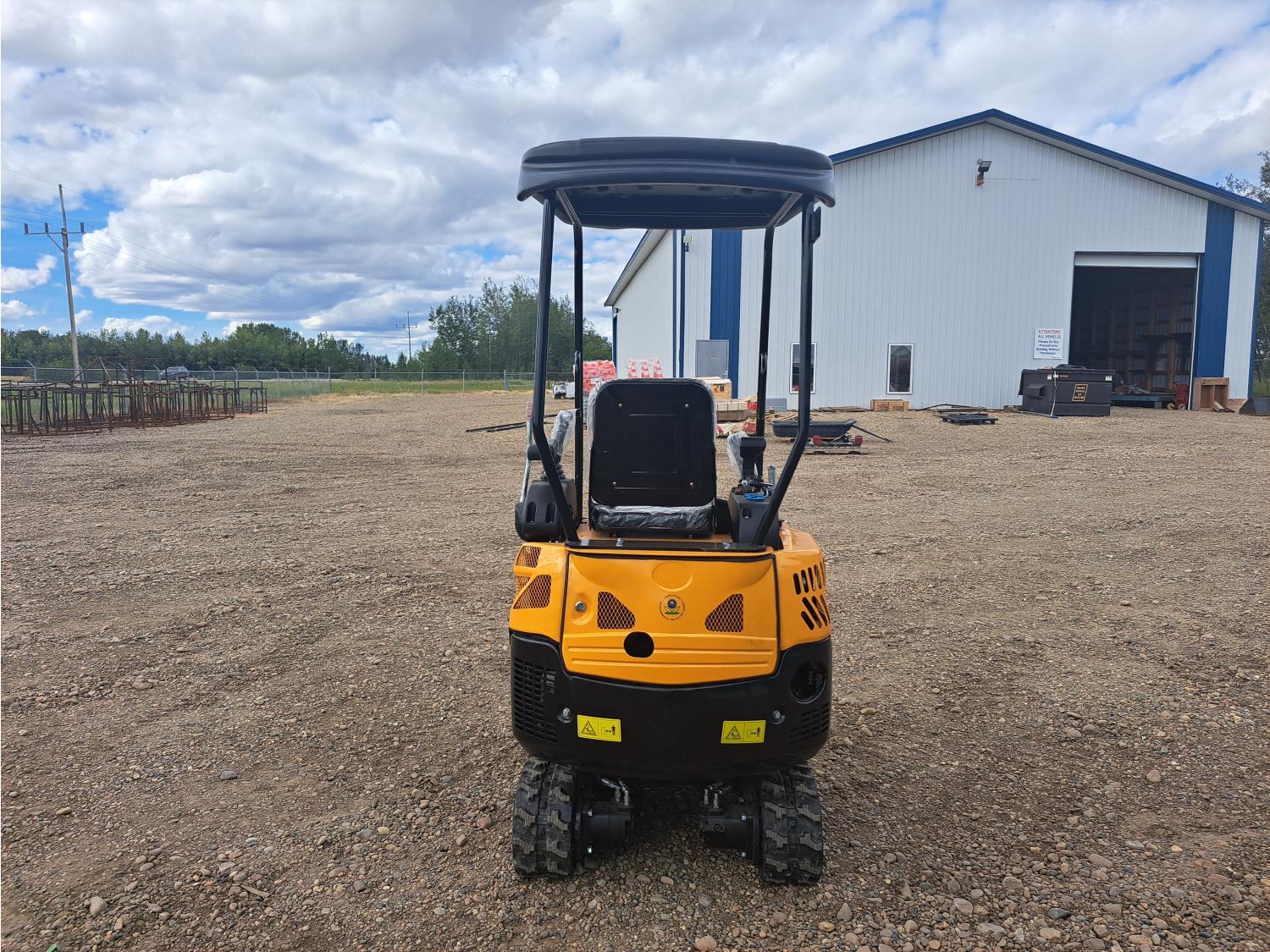 Open station, gas engine, 14 inch dig bucket, manual thumb, backfill blade, 7 inch rubber tracks