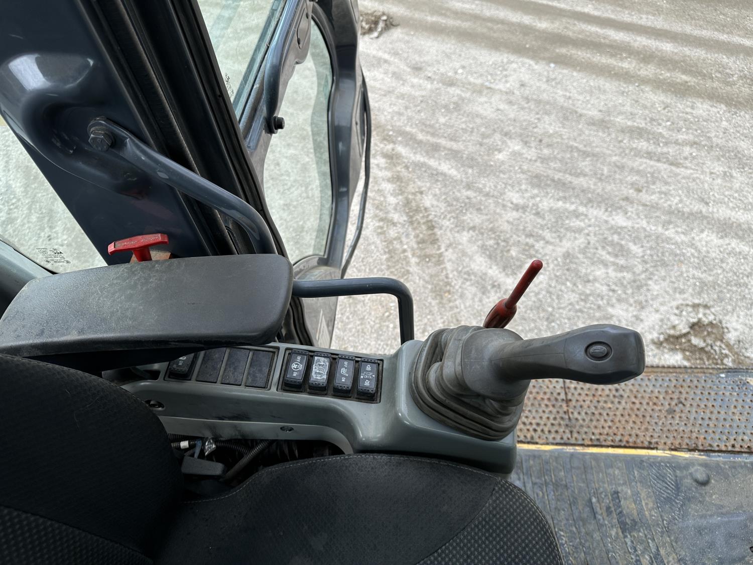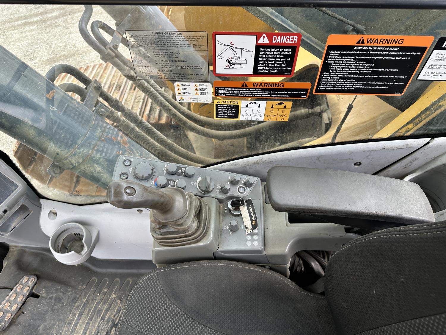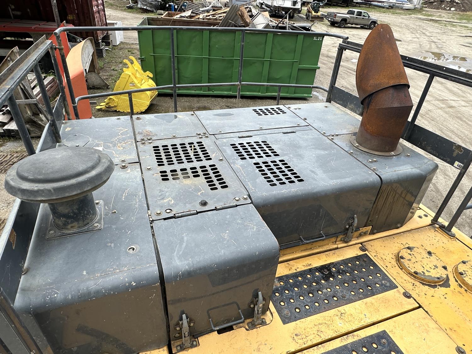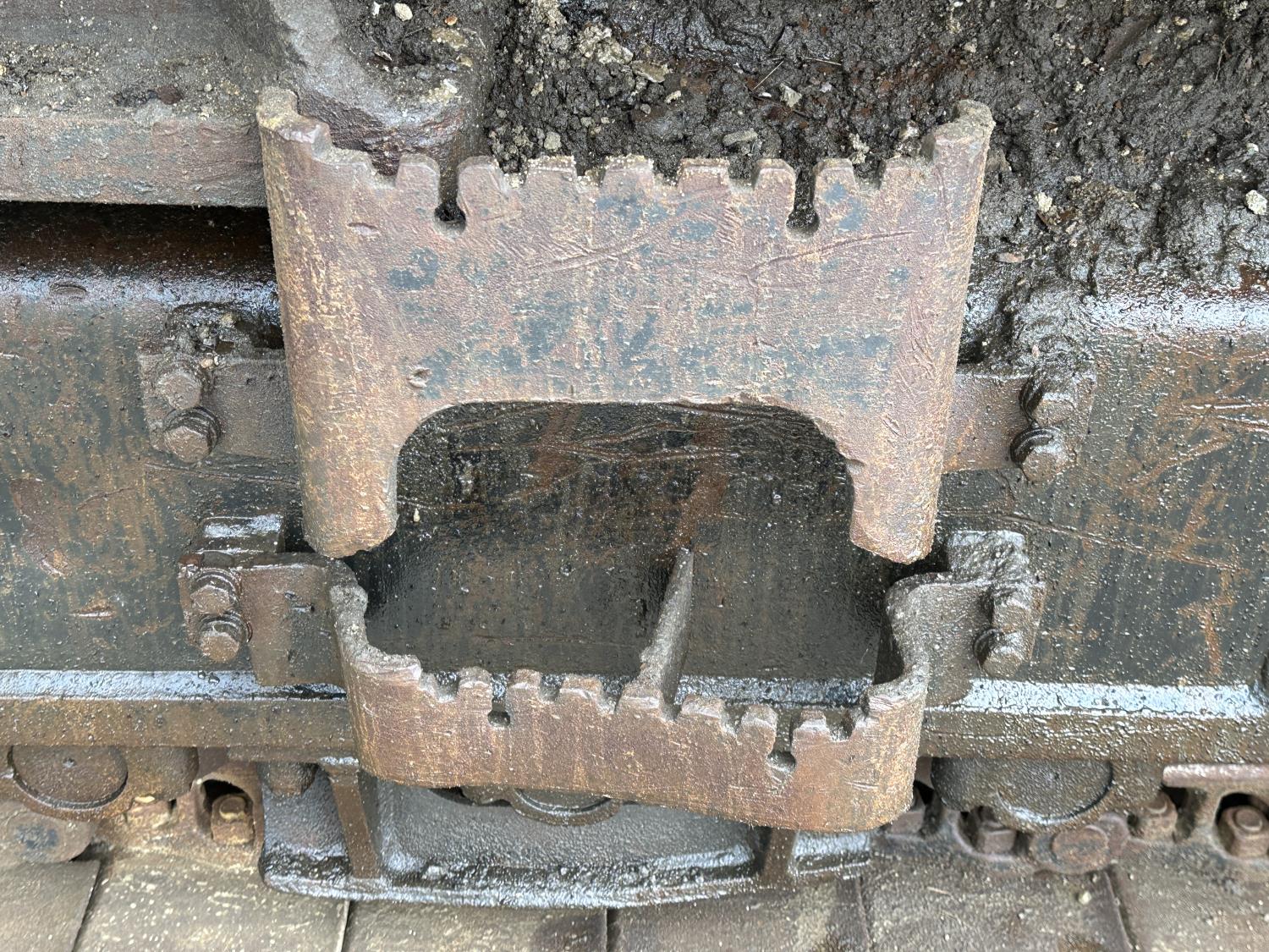 Enclosed cab, A/C, positive air shutoff, manual coupler, 12 Ft 6 inch stick, catwalks, triple grousers