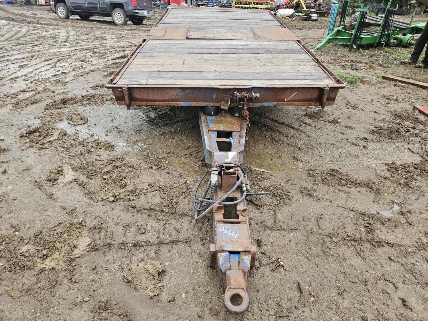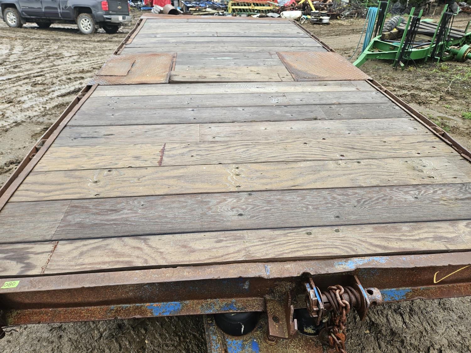 96 inch wide deck, wood deck, torsion suspension, Dually, air brakes, pintle hitch, front hand crank winch, 8.25-15 tires