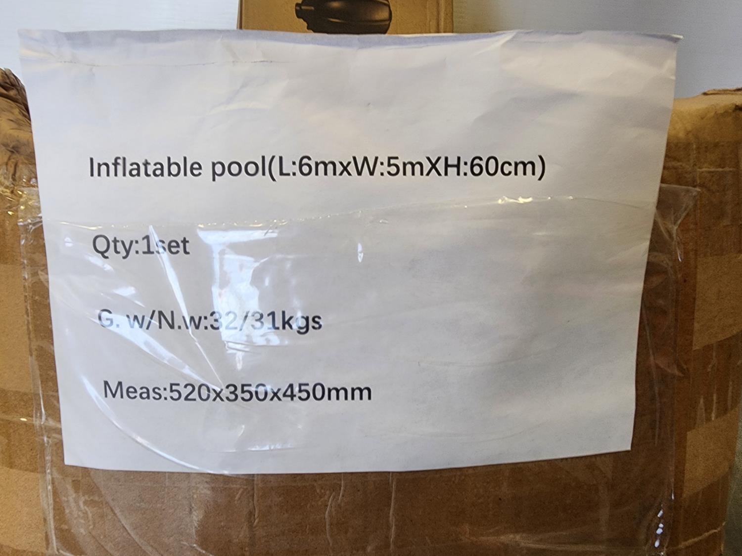 5292 Inflatable Pool 6 M X 5 M x 60cm (Unused)