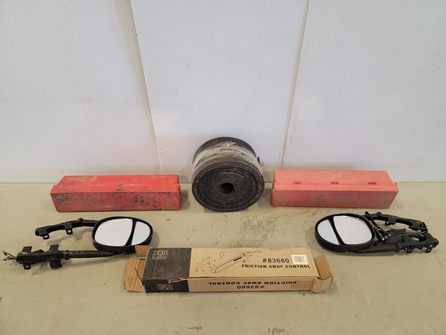5325 Pro Series Friction Sway Control (Unused), (2) Mirror Extensions, (2) Triangle Flare Kits and Baler Belt