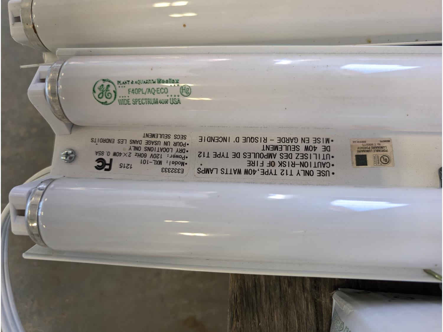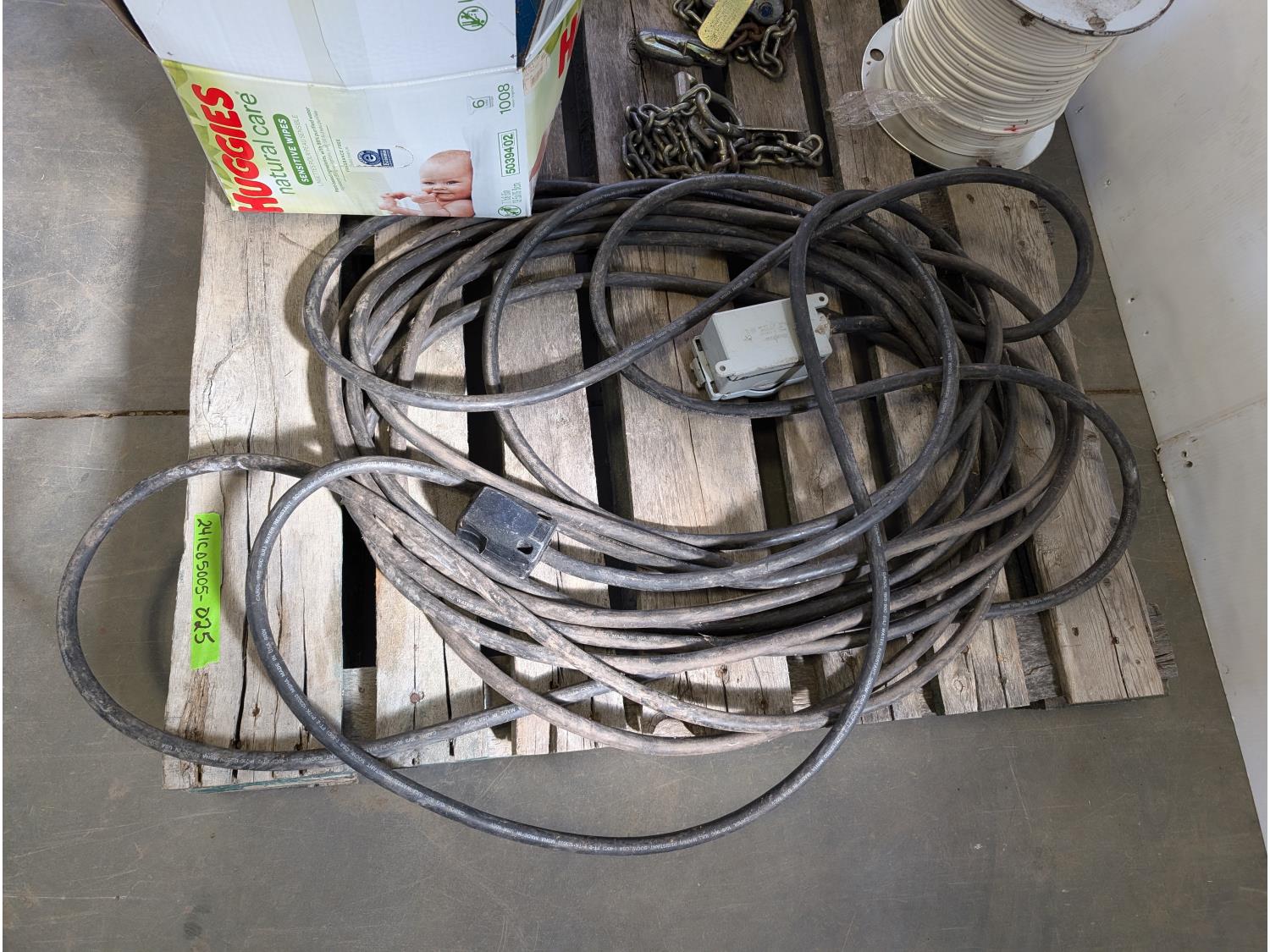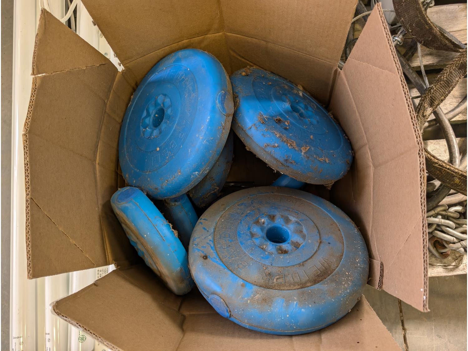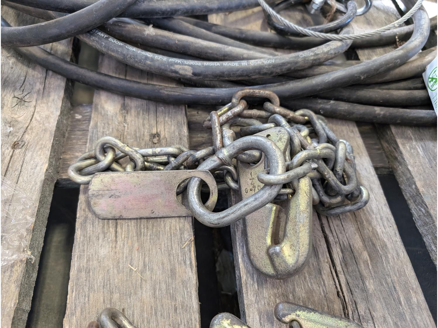 (2) fluorescent light fixtures, dumb bell weights, qty of wire, heavy duty extension cord, chains