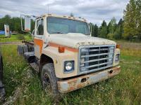 International 446 V8 gas engine, manual transmission, hoist, 206 inch WB, 10.00-20 tires