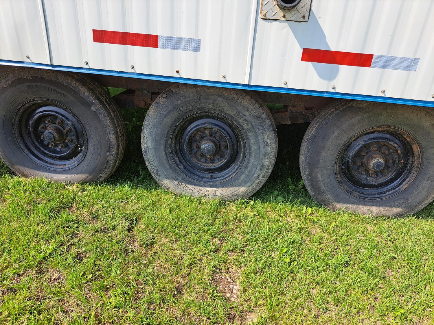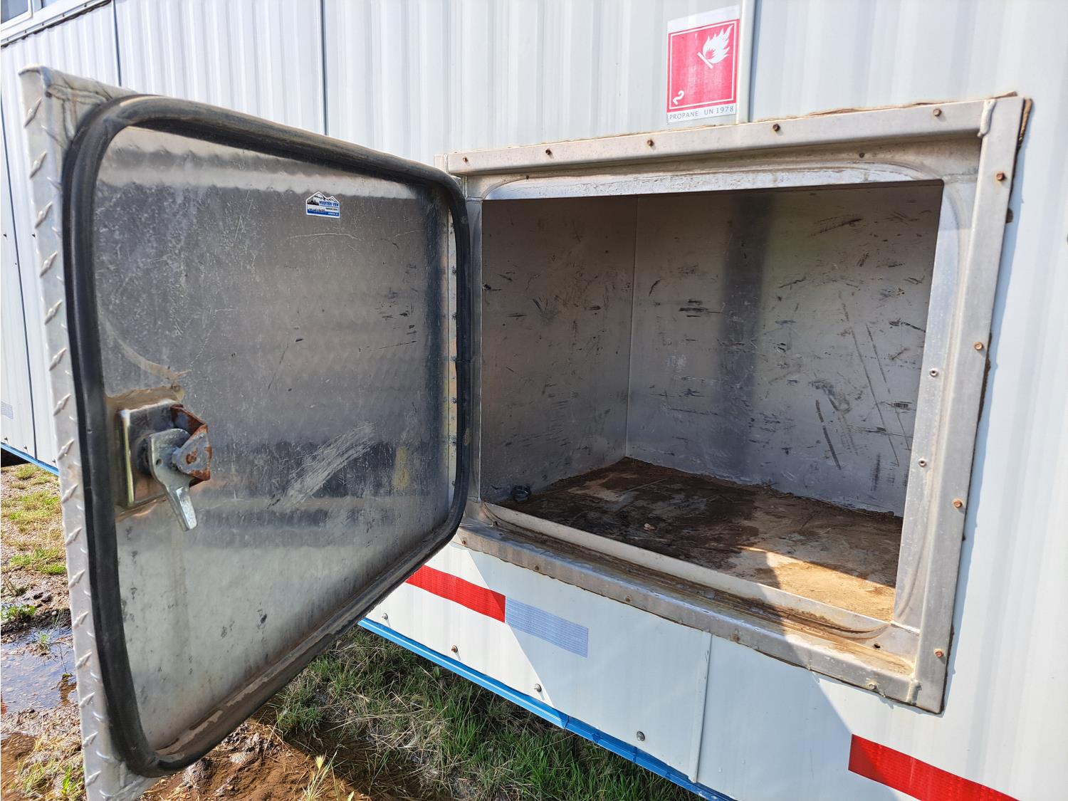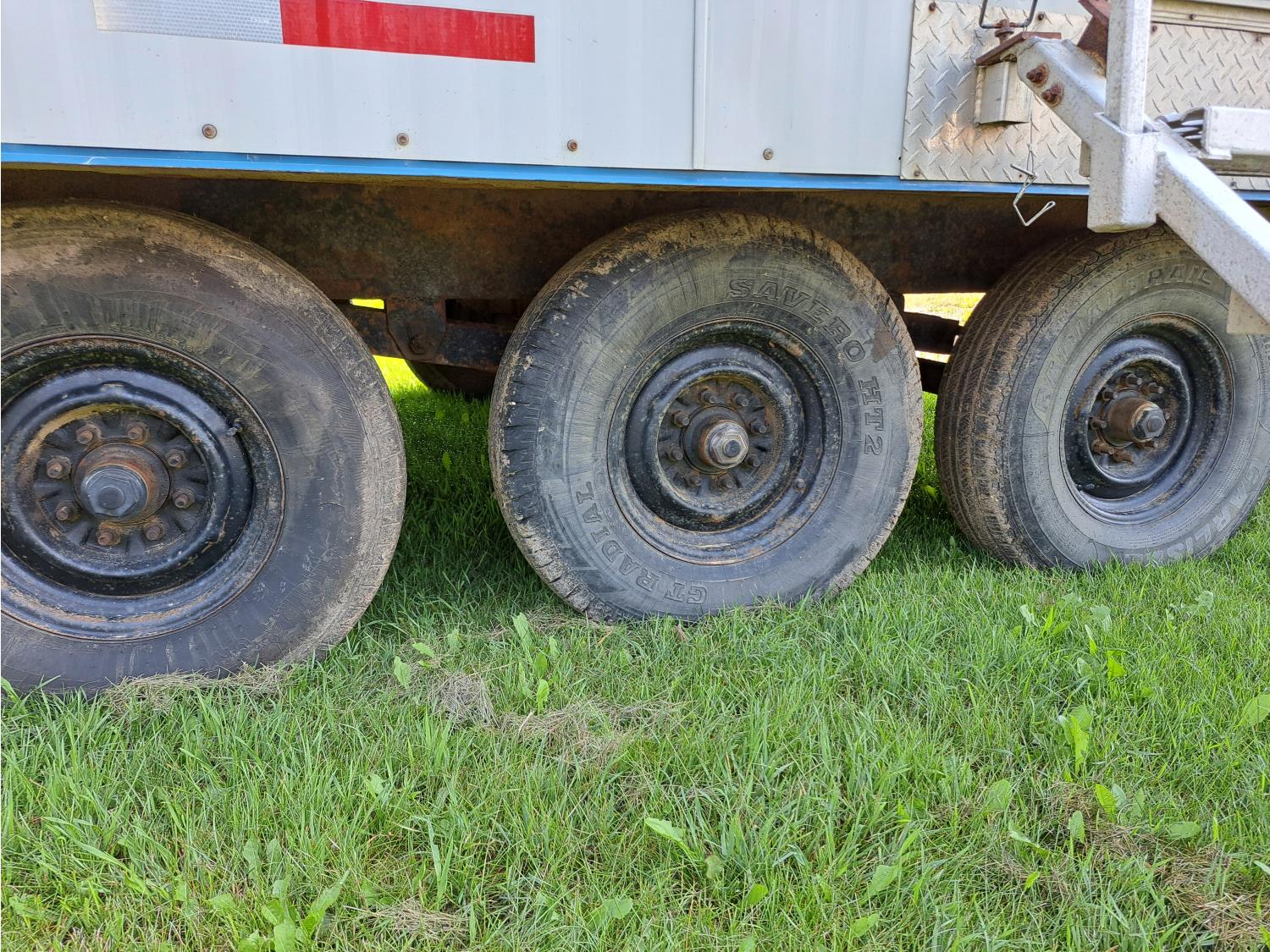 sleeps 3, fridge, oven, microwave, full bathroom, furnace, hot water system, air conditioning, 110/220 power, propane tank, pintle hitch, current C-vip, air over hydraulic brakes, 235/85R16 tires