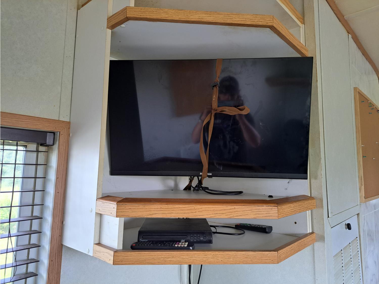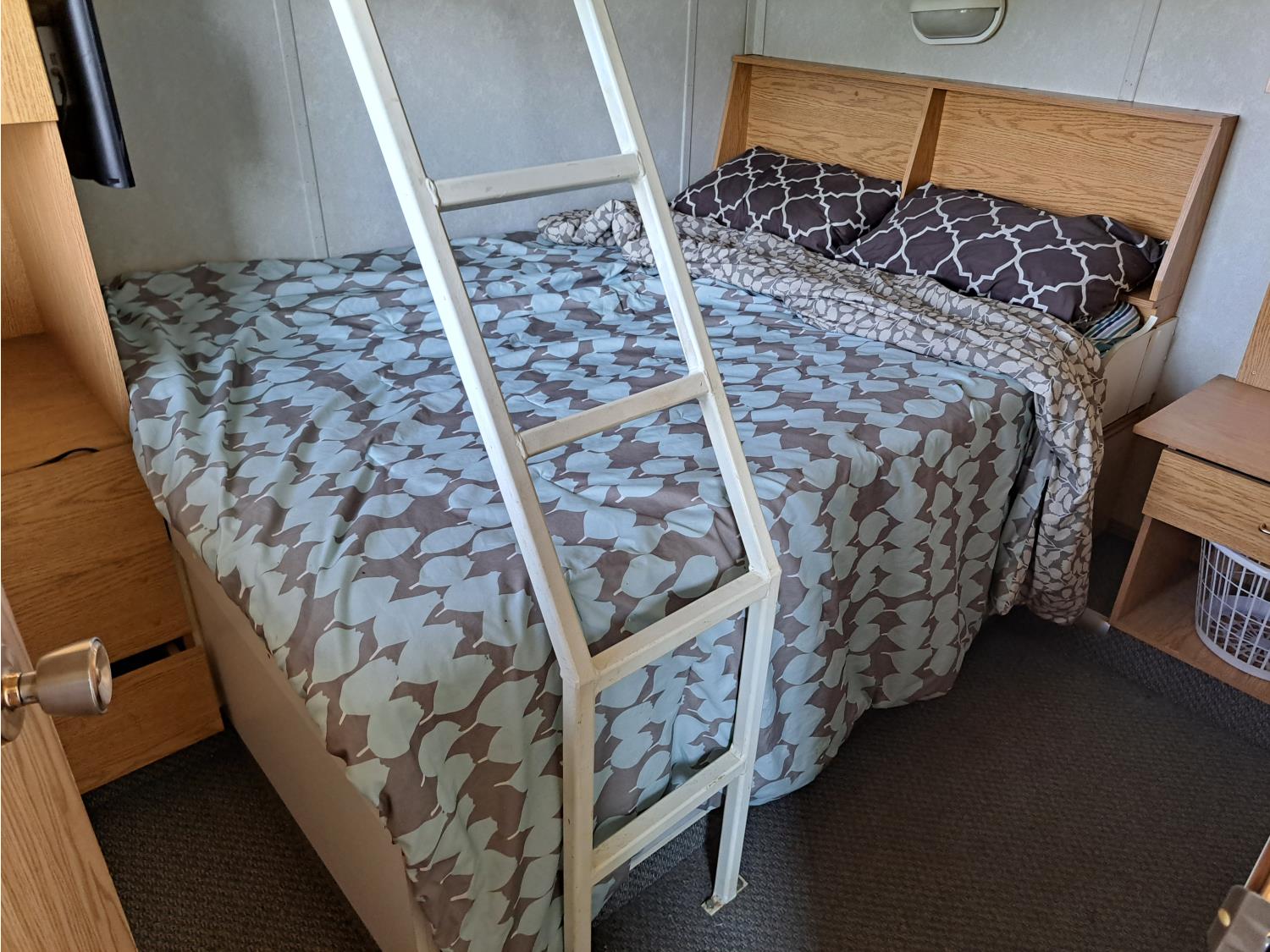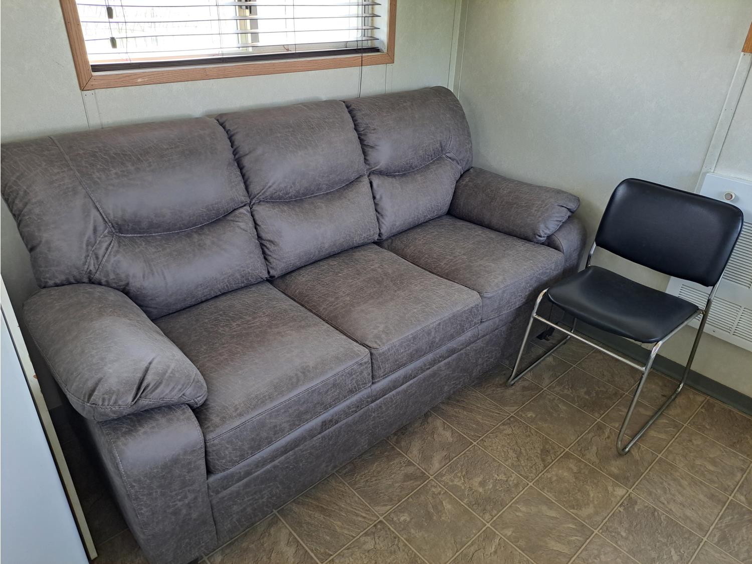 sleeps 3, fridge, oven, microwave, full bathroom, furnace, hot water system, air conditioning, 110/220 power, propane tank, pintle hitch, current C-vip, air over hydraulic brakes, 235/85R16 tires